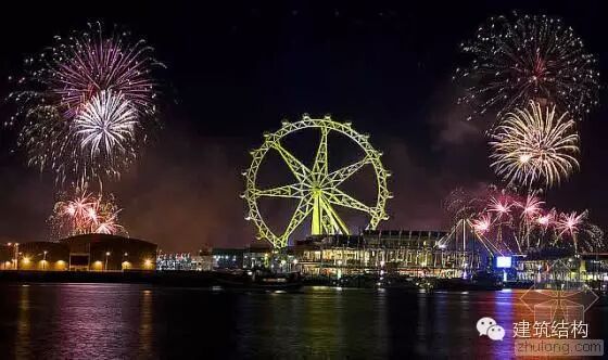 ▼墨尔本观星摩天轮,Arup设计 墨尔本的观星摩天轮在六年前就已经出现了,但是工程师发现它的设计存在一定的安全隐患,于是Arup对它进行了改造,使用的最新压轮是世界上最大的,可以承担21个乘客舱。