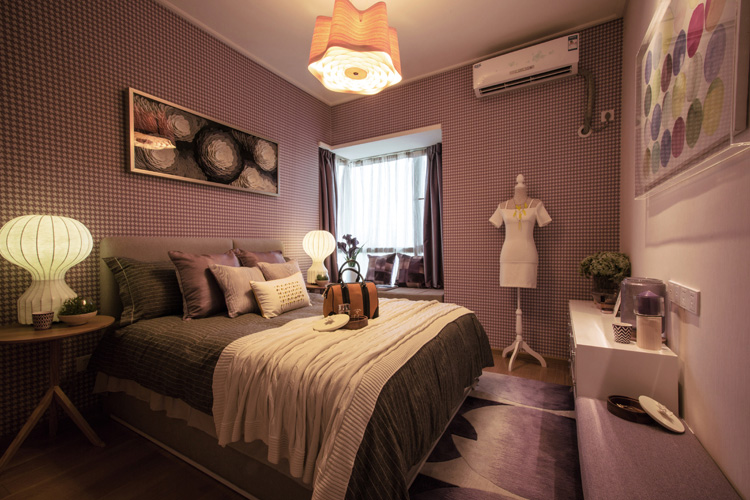 紫色有安神的作用,无论是气味还是色彩,总会给人一种迷幻的效果。用来装饰卧室十分得当,与白色及灰色相搭配,不仅衬托了紫色的纯净,同时也为卧室增添了一丝优雅和时尚的感觉,使得房间优雅舒适。让你在这个空间当中领会到的是那股充满安定和柔和的生活享受。