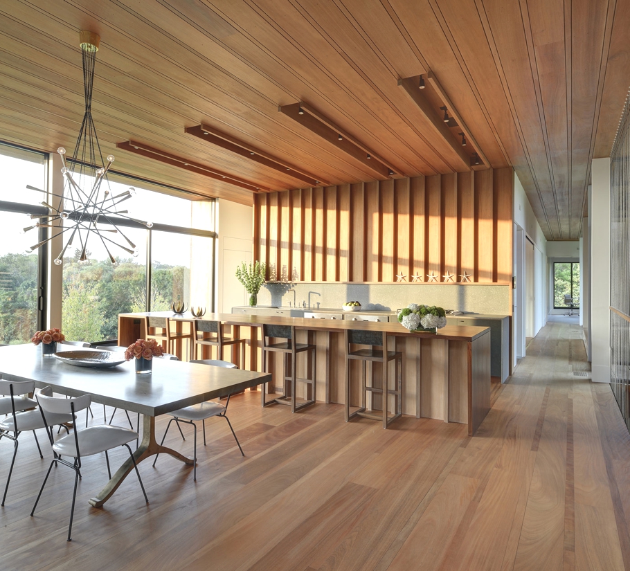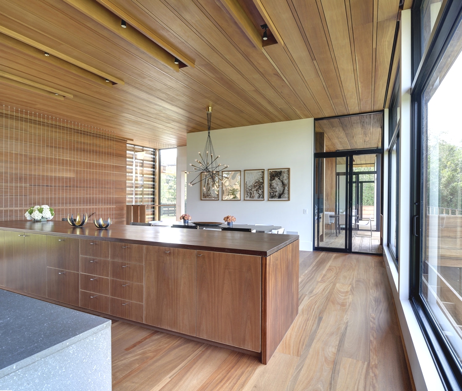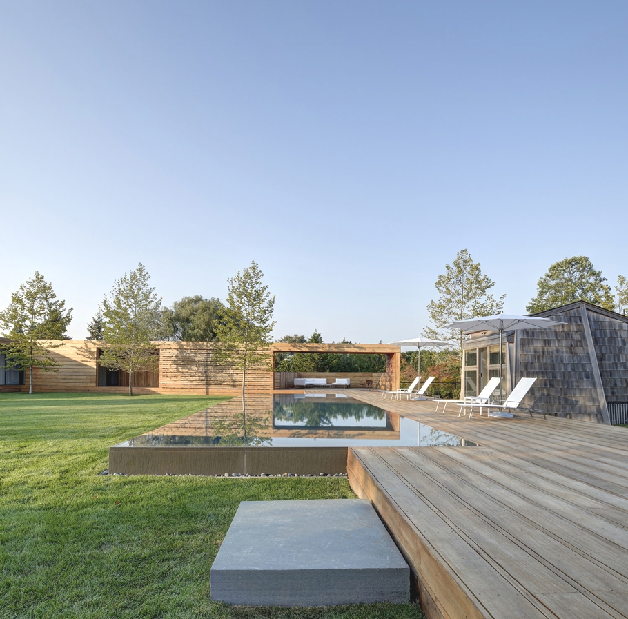 该豪华度假别墅位于美国纽约,由Bates MasiArchitects设计,占地面积约6027平方英尺。建筑师为了构建美妙的生活情境,让建筑与大自然产生美妙的链接,特意设计了一个无边的泳池与木木栈道,交汇的自然景观构成了一副漂亮的画面。