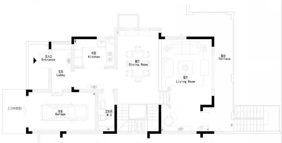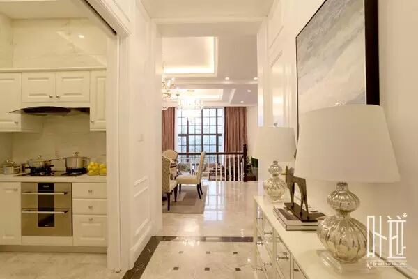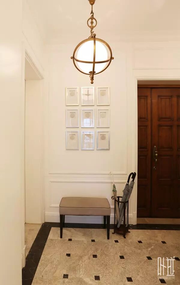 走进别墅,低调内敛的浪漫气息层层叠近,少了传统欧式风格中的极致与繁琐,多了份清雅的格调。入户玄关作为客户与空间的第一道窗口,圆形的吊灯、换鞋凳及带有生活记录的家庭照片,简单的造景营造了浓烈的生活气息,塑造亲切的“欢迎”氛围。