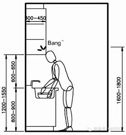 ①吊柜底面标高较小时易造成操作时的碰头和视线遮挡