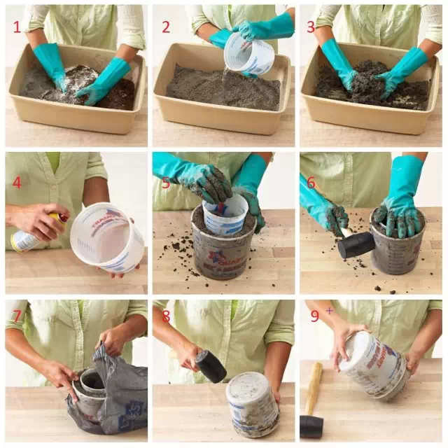 装修剩余下的水泥扔掉很可惜!也不环保 !用它们来做一些实用又环保的水泥小花盆吧!