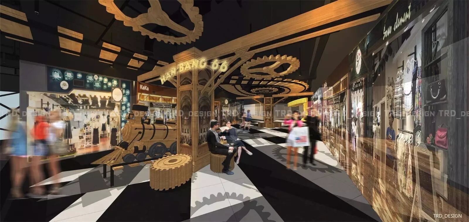 通过各式仿真植物,动物造型等元素,打造一个休闲舒适的自然世界,给潮街注入鲜动活力