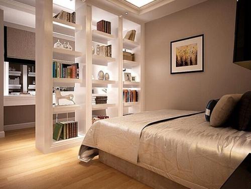 在这个蜗居的时代,很多人为了节省空间,制造出更多功能区,都在卧室里设计了小书房。但书房卧室如果完全没有隔断,肯定是不好看,也不利于办公和休息的。今天我们就来看看几款卧室书房的隔断案例吧!
