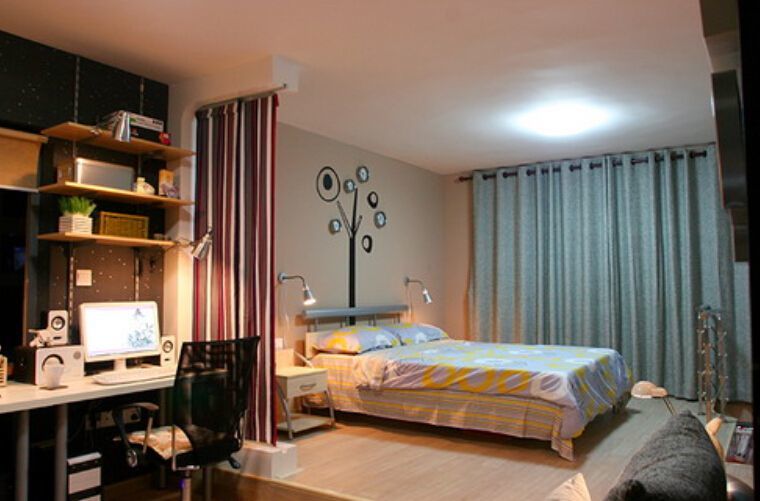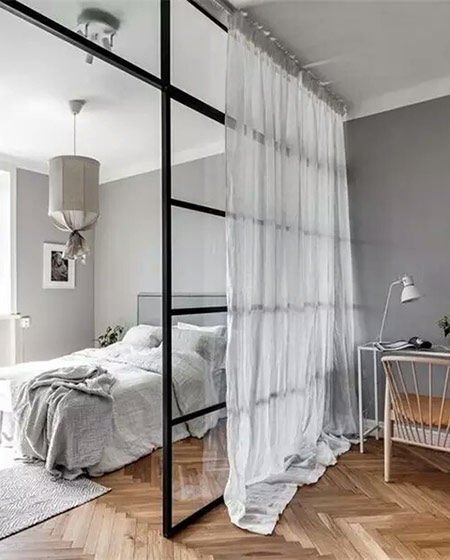 2.最简单的隔断当然是布艺窗帘了,不需要多加的墙体和家具,安装一面帘子,就会有很大的不同哦!