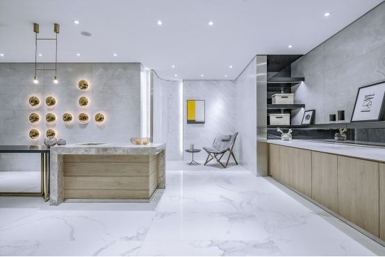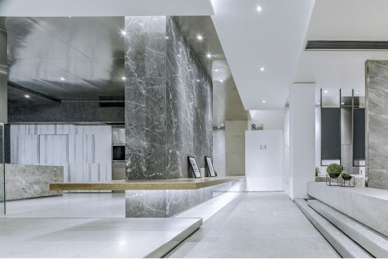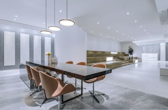 / 整个设计的过程亟须审慎,新旧文化碰撞、融合而成的视角,在块与块错落有致的转化中呈现品牌识别,改变积淀而成的传统观念,而于更新的品牌体验,建材商态的变革不再以几年为单位,而是时时刻刻面对挑战,对于传统和未来,重新定位对奇丽砂陶瓷总部而言不失为以恰当的落墨。