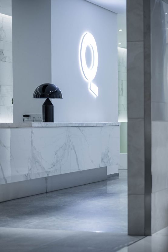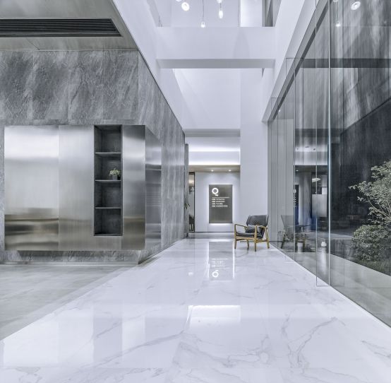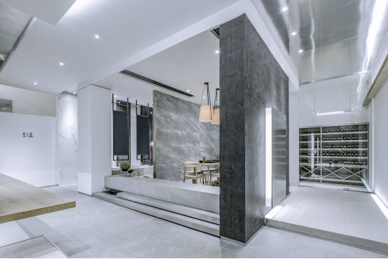 奇丽砖Qualicer Ceramics创立于2006年,意为:品质磁砖,这也是品牌所始终秉承的研发、生产、服务宗旨。在产品研发上对质感、美学、功能的极致追求.产品目前不仅畅销国内市场,更是远销欧洲、北美、澳洲、日韩等60多个发达国家和地区,以优异的品质和极具美学质感的装饰效果受到众多用户的厚爱。 设计共有五层,首层集设计、美食、产品销售等跨界整合。打造视觉、味觉、嗅觉、触觉与听觉五重精神体验。白天,大量自然光涌入落地玻璃幕墙,以中和光雕的视觉冲击力,落窗外的景观有意可为引入室内。Q-time茶道及美食渗与其空间之中,强调场景体验,餐厅特邀知名主厨及她的品牌餐饮团队掌勺。香港香薰堂LEBARAGRANCE专门调制的独特的香味,为大家开启非一般的艺术味蕾体验,饱尝到美食给带来的艺术体验生活美感。将一座当代建筑植入这片传统展厅的街区。