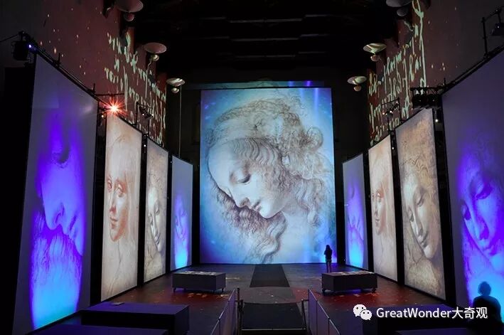 不经意间,转角一座小教堂 海报上是来自500年前达芬奇画笔下 抱银鼠女人的惊鸿一瞥 寻着海报,走进教堂 巨幅的影像,曼妙的光影,震撼的音效 让人瞬间跌入烟波浩渺的艺术海洋