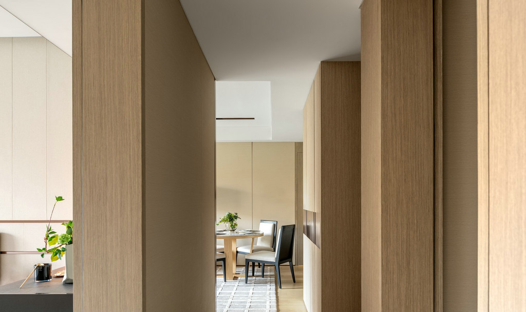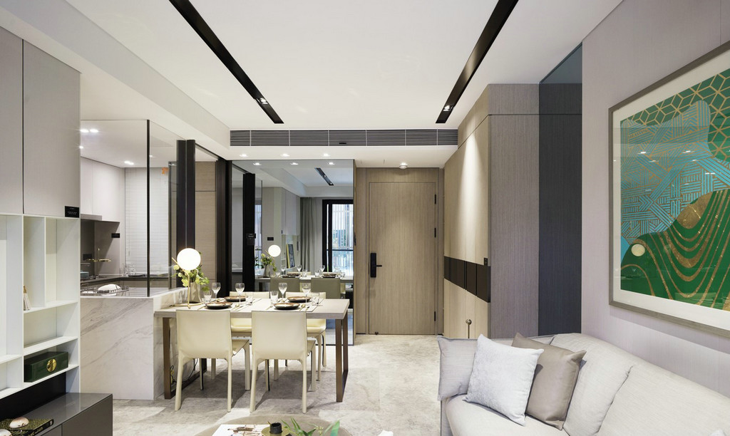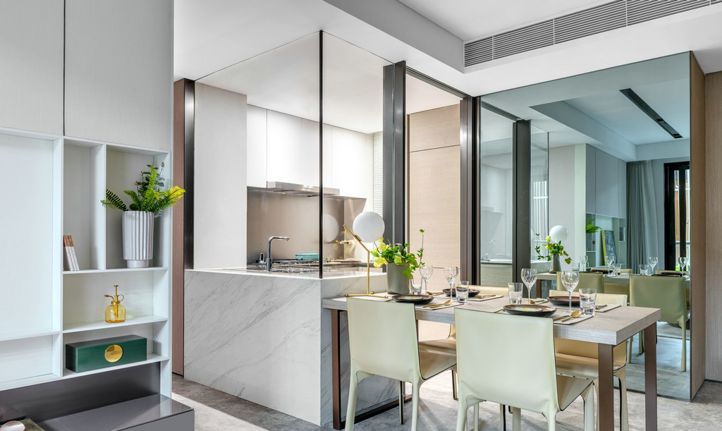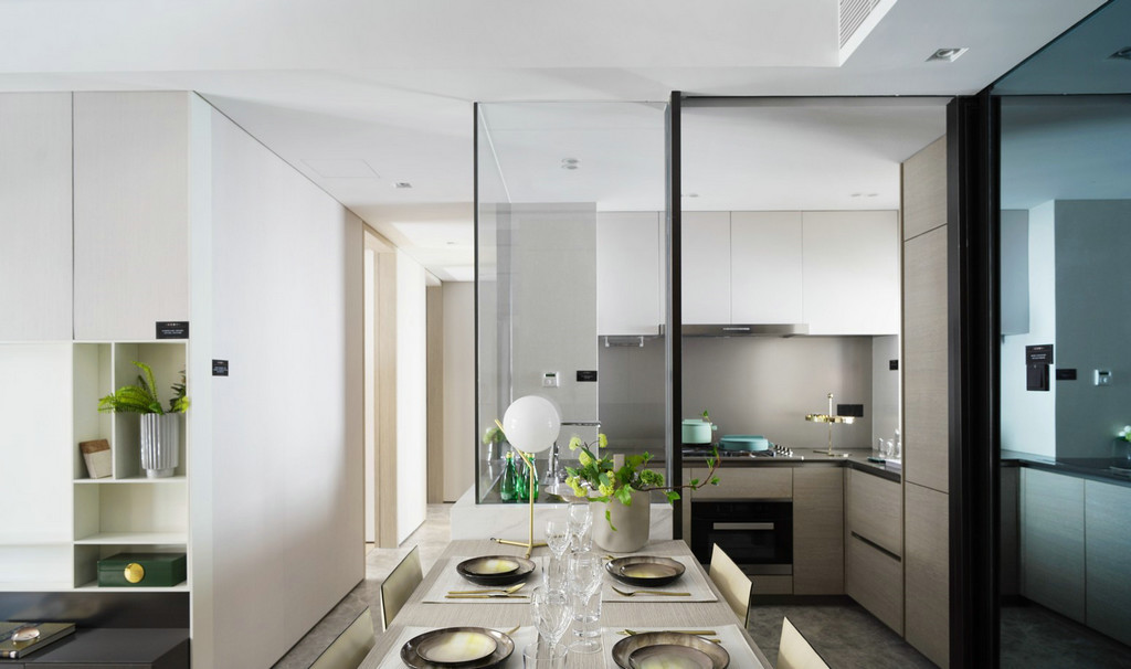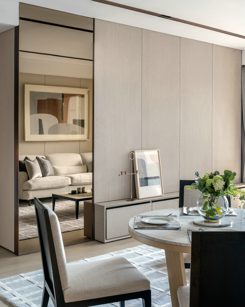 静安府位于上海静安区新静安核心,由华润华发双500强企业联袂打造,是上海市中心近十年来、罕见的70万方超大体量整体开发的社区。其中95.0㎡户型、115.0㎡户型样板间室内设计由国际顶级设计团队SCDA打造,软装则力邀H.N.LIN空间美学馆演绎。以舒适居家为本,给予空间更多的吸引力,用当代的审美视角将空间具化为兼具功能性和艺术创造性的生命体。 【95.0㎡户型】 95.0㎡户型公寓是为了迎合人们年轻、前卫而又繁复的生活方式。略带灰色的纯色背景颇具反衬效果,突显出黑色装饰和浅色镜子,并同现代简洁的家具达到平衡,赋予城市生活温度、质感和爱。 在“青岚”,大面积的玻璃元素是不可或缺的主角,承载着窗外的四时变化,轩窗竹影下,是一室的静安活力。Cassina 布艺沙发搭配着高低错落的 Motelni&C 茶几圆凳,柔化出优雅俏皮。而沙发旁Flos几何造型立灯,则与金属质感边几一道,呼应了墙上以乌金与草绿色为主的艺术画。 餐厅和客厅相连,SCDA用谦和的姿态为这里注入了独特的闲适体验。木质墙面带着质朴的自然味道,开放的动线也更容易形成视线交叠的可能,令人们不经意间发生互动。 餐桌上放置Diesel Living的Cosmic系列餐具和Flos几何桌灯,前卫大胆中透露出生活质感。厨房与餐厅以玻璃门相隔,选用符合主色调的摩登绿厨具,通透的视觉效果延续了整体空间的活泼基调。 在【发现设计】公众号后台回复【560】获取该公司高清项目图片 虽为95.0㎡户型,SCDA还是做到了开间朝南的三房,让有限空间倍增。步至主卧,入口左侧衣橱的玻璃门板,提升了明亮度与视觉感。当然,多飘窗带来的功能的提升和景观视野的拓展也是亮点之一。 淡黄色的柔光沉淀在空间里,营造出放松的氛围。在这个空间里,你可以慢一点,再慢一点,仔细地看看四周,领略设计师的心意。要知道,每一种视觉创意都不仅是设计师个性的彰显,更是他的知识,能力和情感的综合体现。 轻盈柔软的浅色系床具、薄 荷绿艺术画,令整体氛围柔和轻松。艺术质感的吊灯及落地灯组合,与飘窗上的趣味斗牛犬相映成趣,不经意间带有一丝玩酷气质。“真正的设计必然是超越时代的某种事物。那些依赖于时代或和依赖某个特定社会环境的设计必须会被时代淘汰。”设计师说。 【95.0㎡户型】 115户型公寓明亮清透,以原木色为主基调,质感自然且肌理丰富,赋予空间无限的生命力。步入客厅,空间色调素净淡雅,点缀有少许的奶油色。抬眼望去,窗前微风习习,一派恬静安然之意。高级裸色空间呈现,搭配低奢灰米色和艺术感的蓝绿色,明快跳跃间为空间寻回生活本真。 两幅几何艺术画遥相呼应,点缀清新绿植与金属饰品,打造品质空间的同时,展示空间最独特的质感的。几何块状的地毯上放置裸色沙发和同色系立灯,营造出雅致的空间氛围。 地毯与沙发柔软的质感将造型简洁、立体的茶几故意错开来,矛盾之间,情理之中,相互衔接。此外,茶几巧妙地前后错开放置,一方引入、一方宽松,一张一弛之间传递出生活的动态与平衡哲学。 作为与客厅最近的空间,餐厅以圆形为桌面,在色调保持一致的基础之上,与空间中俨然整齐的线条和方形布局产生一种冲突之美,却融于方圆之内,并延续主色调的餐桌和浅色餐椅,保证了客餐厅立面视觉的优美协调。“笔墨无多,愈玩之而愈无穷者,隽雅也”,以笔墨之精少,绘空间之无穷,便是隽雅的真谛。 以艺术生活为基调,融合摩登调性的现代生活融合超越时代的空间感,不仅是 一种视觉感受,同时也是一种低调美奢生活体验。 细腻的笔触投向主卧,日光透过窗外栏栅倾斜而至,这便是设计师想要体现的—闲适淡雅。通往主卧洗漱间的两侧,嵌入了淡雅原木色系衣帽间,如时装陈列般呈现眼前,提升空间品质感。 儿童房采用大胆的橘色系点缀,多功能书架简洁干练的线条设计,与艺术画的热情相互搭配协调,呈现孩童年轻的率真美感与轻松自在的生活态度。