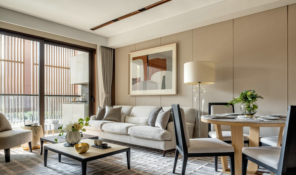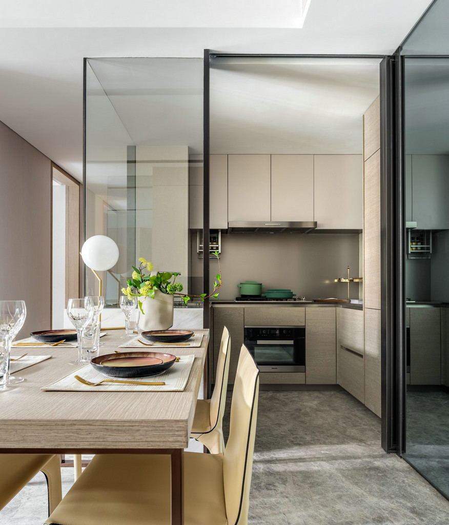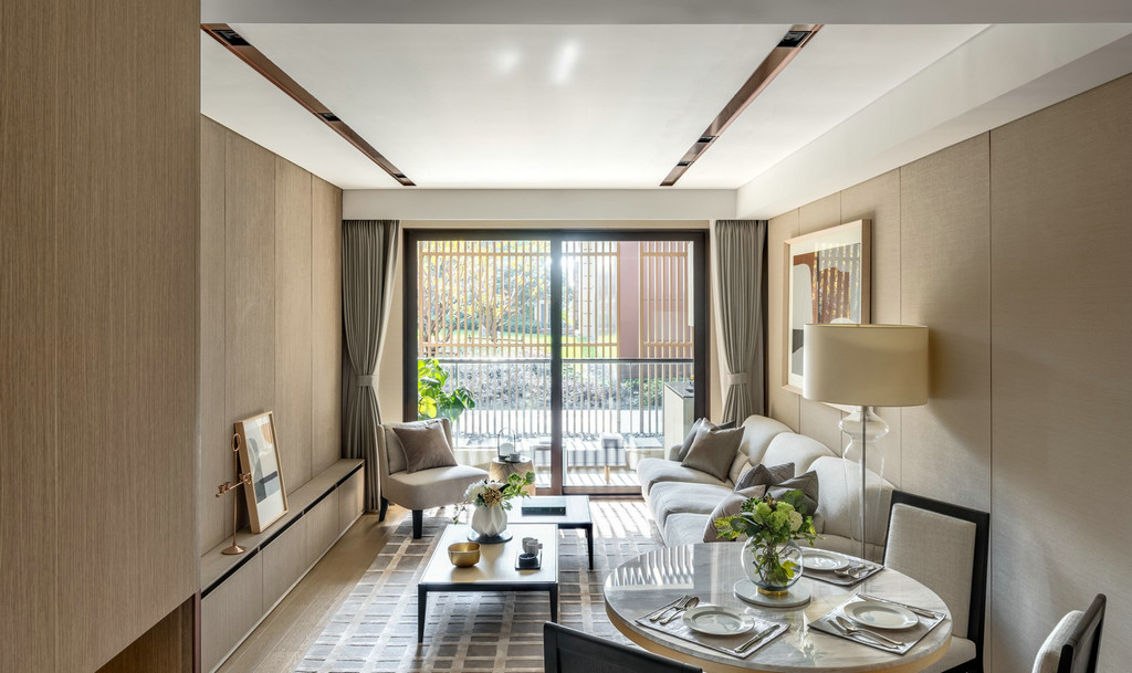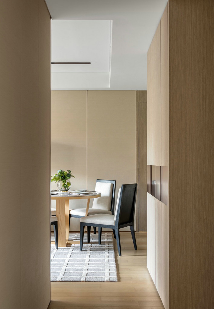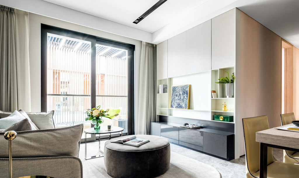 静安府位于上海静安区新静安核心,由华润华发双500强企业联袂打造,是上海市中心近十年来、罕见的70万方超大体量整体开发的社区。其中95.0㎡户型、115.0㎡户型样板间室内设计由国际顶级设计团队SCDA打造,软装则力邀H.N.LIN空间美学馆演绎。以舒适居家为本,给予空间更多的吸引力,用当代的审美视角将空间具化为兼具功能性和艺术创造性的生命体。 【95.0㎡户型】 95.0㎡户型公寓是为了迎合人们年轻、前卫而又繁复的生活方式。略带灰色的纯色背景颇具反衬效果,突显出黑色装饰和浅色镜子,并同现代简洁的家具达到平衡,赋予城市生活温度、质感和爱。 在“青岚”,大面积的玻璃元素是不可或缺的主角,承载着窗外的四时变化,轩窗竹影下,是一室的静安活力。Cassina 布艺沙发搭配着高低错落的 Motelni&C 茶几圆凳,柔化出优雅俏皮。而沙发旁Flos几何造型立灯,则与金属质感边几一道,呼应了墙上以乌金与草绿色为主的艺术画。 餐厅和客厅相连,SCDA用谦和的姿态为这里注入了独特的闲适体验。木质墙面带着质朴的自然味道,开放的动线也更容易形成视线交叠的可能,令人们不经意间发生互动。 餐桌上放置Diesel Living的Cosmic系列餐具和Flos几何桌灯,前卫大胆中透露出生活质感。厨房与餐厅以玻璃门相隔,选用符合主色调的摩登绿厨具,通透的视觉效果延续了整体空间的活泼基调。 在【发现设计】公众号后台回复【560】获取该公司高清项目图片 虽为95.0㎡户型,SCDA还是做到了开间朝南的三房,让有限空间倍增。步至主卧,入口左侧衣橱的玻璃门板,提升了明亮度与视觉感。当然,多飘窗带来的功能的提升和景观视野的拓展也是亮点之一。 淡黄色的柔光沉淀在空间里,营造出放松的氛围。在这个空间里,你可以慢一点,再慢一点,仔细地看看四周,领略设计师的心意。要知道,每一种视觉创意都不仅是设计师个性的彰显,更是他的知识,能力和情感的综合体现。 轻盈柔软的浅色系床具、薄 荷绿艺术画,令整体氛围柔和轻松。艺术质感的吊灯及落地灯组合,与飘窗上的趣味斗牛犬相映成趣,不经意间带有一丝玩酷气质。“真正的设计必然是超越时代的某种事物。那些依赖于时代或和依赖某个特定社会环境的设计必须会被时代淘汰。”设计师说。 【95.0㎡户型】 115户型公寓明亮清透,以原木色为主基调,质感自然且肌理丰富,赋予空间无限的生命力。步入客厅,空间色调素净淡雅,点缀有少许的奶油色。抬眼望去,窗前微风习习,一派恬静安然之意。高级裸色空间呈现,搭配低奢灰米色和艺术感的蓝绿色,明快跳跃间为空间寻回生活本真。 两幅几何艺术画遥相呼应,点缀清新绿植与金属饰品,打造品质空间的同时,展示空间最独特的质感的。几何块状的地毯上放置裸色沙发和同色系立灯,营造出雅致的空间氛围。 地毯与沙发柔软的质感将造型简洁、立体的茶几故意错开来,矛盾之间,情理之中,相互衔接。此外,茶几巧妙地前后错开放置,一方引入、一方宽松,一张一弛之间传递出生活的动态与平衡哲学。 作为与客厅最近的空间,餐厅以圆形为桌面,在色调保持一致的基础之上,与空间中俨然整齐的线条和方形布局产生一种冲突之美,却融于方圆之内,并延续主色调的餐桌和浅色餐椅,保证了客餐厅立面视觉的优美协调。“笔墨无多,愈玩之而愈无穷者,隽雅也”,以笔墨之精少,绘空间之无穷,便是隽雅的真谛。 以艺术生活为基调,融合摩登调性的现代生活融合超越时代的空间感,不仅是 一种视觉感受,同时也是一种低调美奢生活体验。 细腻的笔触投向主卧,日光透过窗外栏栅倾斜而至,这便是设计师想要体现的—闲适淡雅。通往主卧洗漱间的两侧,嵌入了淡雅原木色系衣帽间,如时装陈列般呈现眼前,提升空间品质感。 儿童房采用大胆的橘色系点缀,多功能书架简洁干练的线条设计,与艺术画的热情相互搭配协调,呈现孩童年轻的率真美感与轻松自在的生活态度。