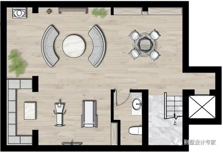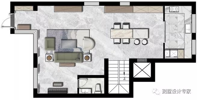 2. 重新规划客厅区域,扩大客厅面积。客房拆改做钢琴厅,增加了一层的使用功能。