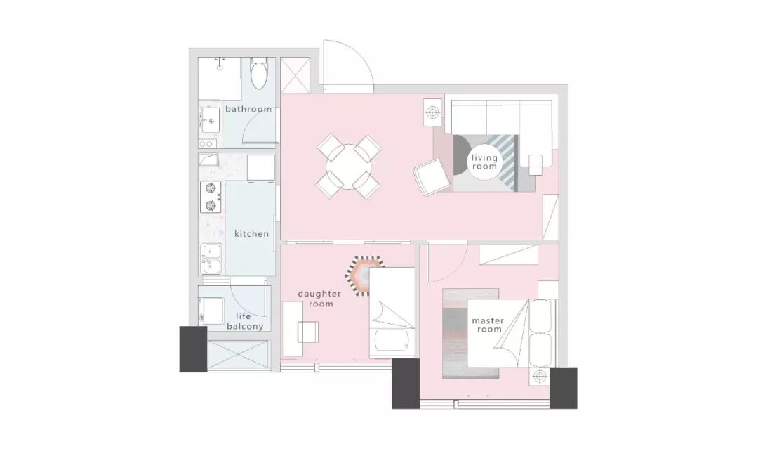女人对粉色似乎有种无法抗拒的魔力,空间配色如同恋人相遇迸发爱情的温暖光芒。