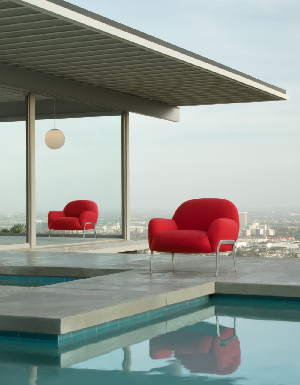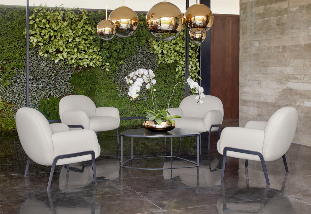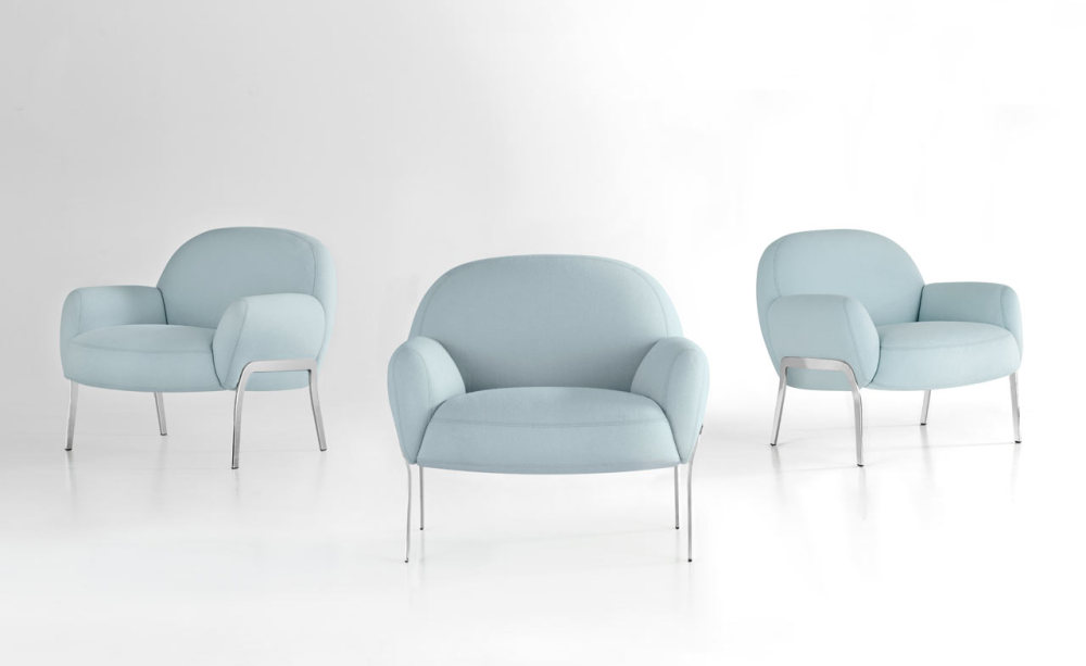 支撑丰满形状的超薄腿使它看起来就像座椅漂浮在地面上一样。