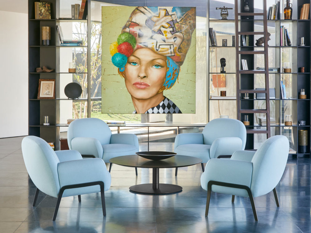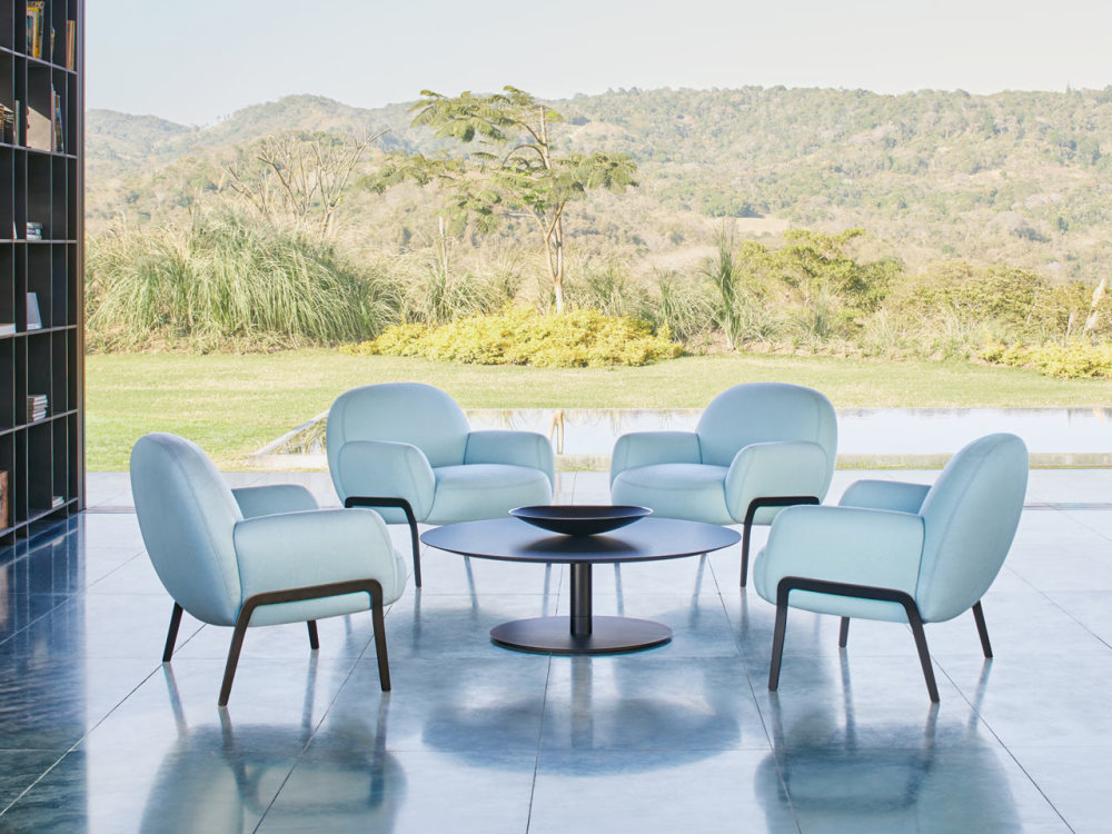 莫妮卡·弗斯特设计工作室(MonicaF Rster DesignStudio)将一个弯曲的、过盈的座椅与薄薄的金属腿合并在一起,为伯恩哈特设计公司(Bernhardt Design)的它的设计跨越了几十年,没有一个定义的风格,引用任何特定的时间段。它看起来舒适,但精致,好玩,但克制,给它一个未来主义和经典的外观。