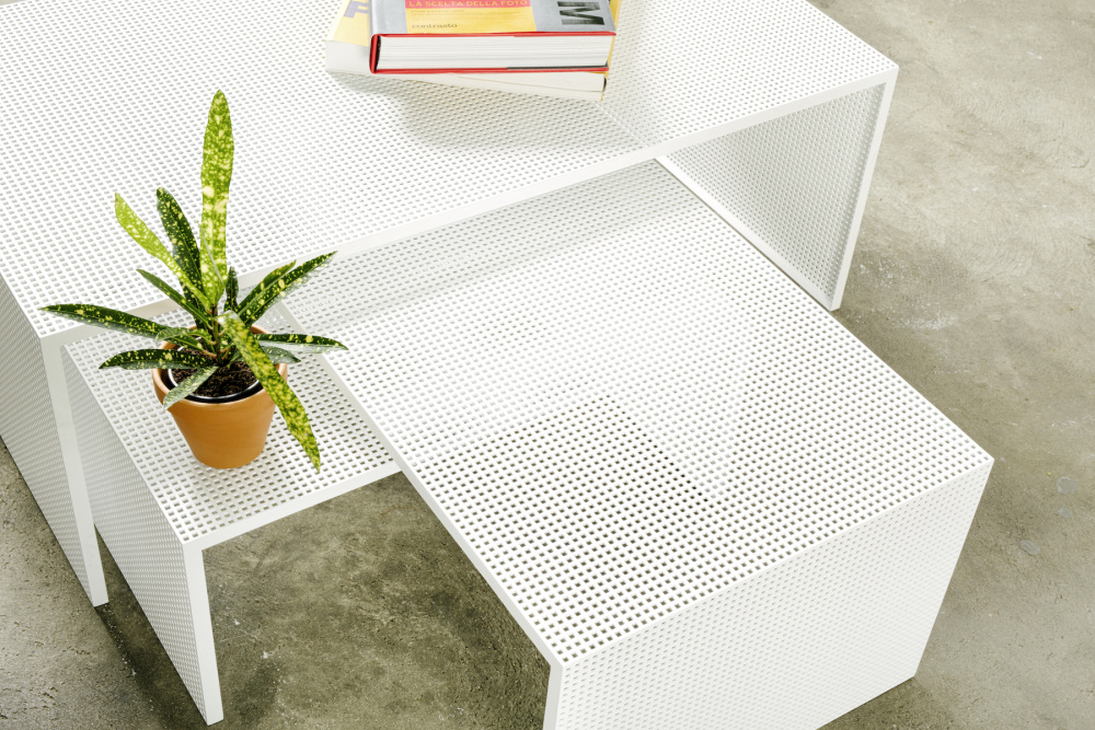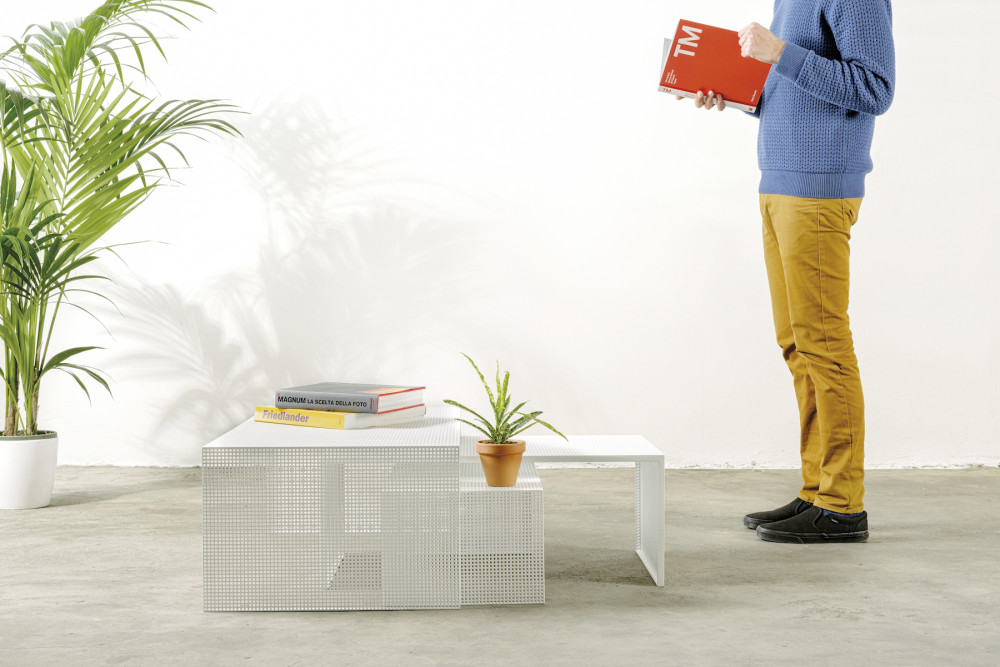Dentro是由意大利设计师MarcoRipa创建的一系列最小的表,它由三个完全相同的表组成,它们可以相互嵌套在一起。表的特点是在表面穿孔,创造透明度和一种轻和干净的美学。这些桌子有白色或黑色,并完成了粉末涂层。