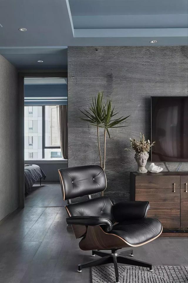 因为原有精空间设计的施工和软装基本都是流水线化,原墙面和地面材质远远达不到要求(最后拆除发现质量确实很差)顶面的处理上摒弃了一贯的白色,我们在想整个空间他应该是一个完整的空间,太大的反差和生硬过度都不协调,所以在顶面墙漆上选择了灰蓝色搭配墙面地面的水泥灰。