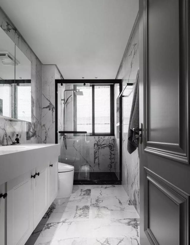 公共区域并没有过多的软装设计物,分类细看,其实都还挺简约的,纯色的背景下,选用了干净立体的pu线条加入,当光线照射在墙面上时,折射出不同层次的高級灰,适当的黄铜元素点缀,增添整屋的浪漫精致感,一步一景的設計手法,每一步都有让人想停留,细细品味。