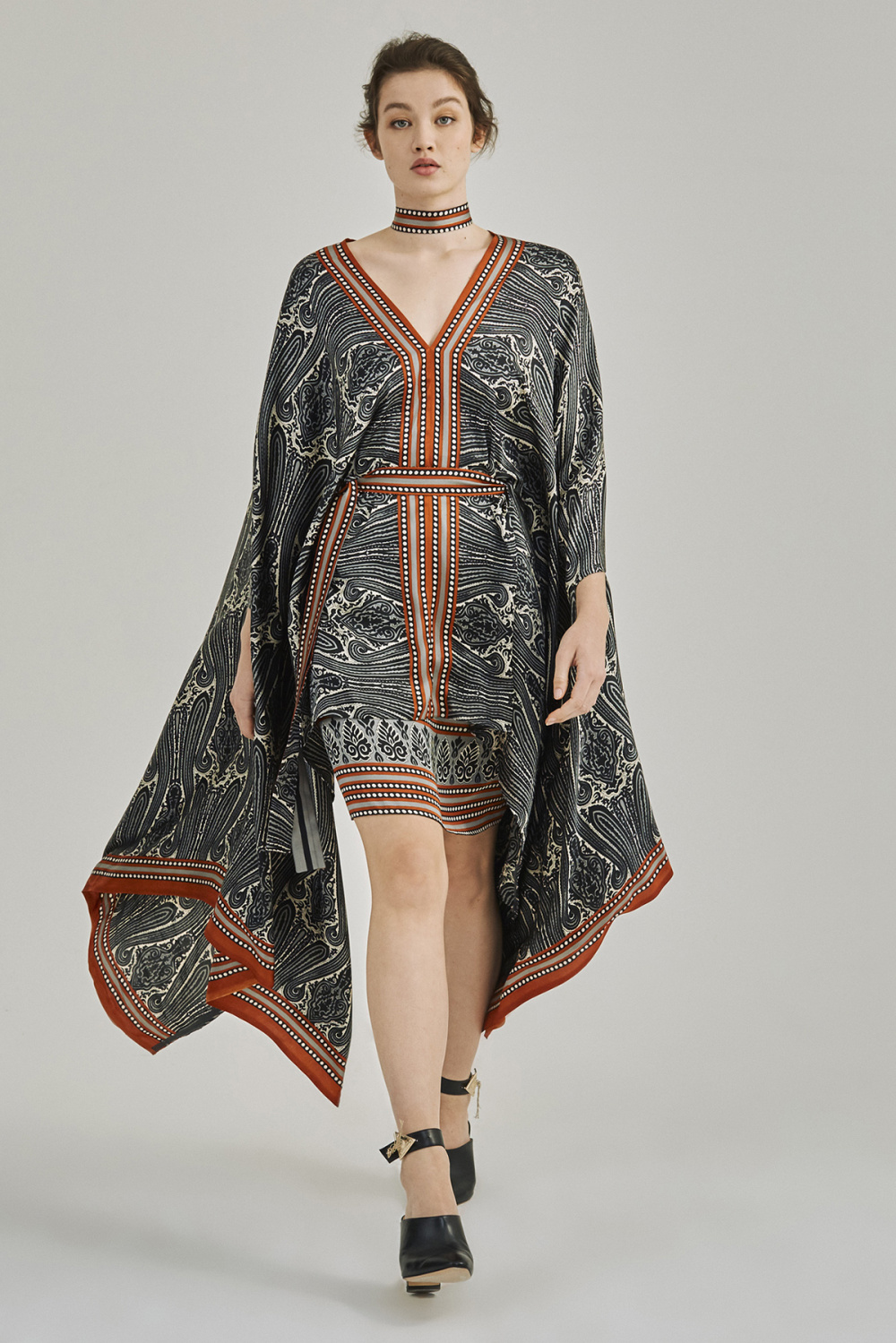 Karim Adduchi时装系列裙子包括形成裙子的泥土色调的彩色流苏-16.jpg