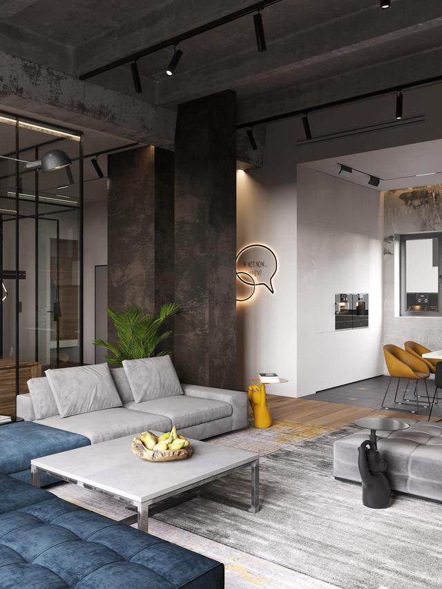 三套公寓巧妙地结合在一起,为一对年轻夫妇创造了一个全新的136平方米的家。位于俄罗斯莫斯科的这个单一功能空间的設計是由Cartelle design公司完成的,它给人一种很酷的阁楼風格。最后的活力外观是结合大量的原始混凝土,一些金属和软装设计涂料,加上温暖的天然材料,帮助实现了一个舒适的基调,以及前卫的美學。尽管灰色、黑色、白色和木头的色调断断续续地受到亮黄色和蓝色的干扰,但通过强调家俱、配饰和纺织品,黑白色调还是很有特色的。