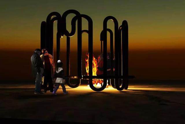 UMA 希望能在寒冷的户外放置一些这种水暖气亭子,由标准的钢制水管制成,外部包裹着泡沫橡胶绝缘材料 ▼