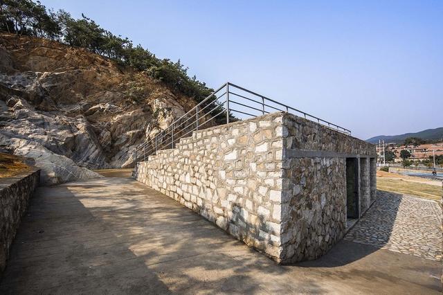 场地中原有石壁被完整地保留,不做任何处理,成为剧场的背景墙。石壁因为开采石料形成弧形,使其具有很好的声学效果。在建築師看来,石壁本身就是观演最重要的内容,它不仅是舞台背景,也是演出者本身,石壁的存在决定了整个剧场的性格和气氛,是空间的起点。看台环抱石壁设立,从舞台地平面逐渐抬高,与石壁一起形成聚拢的场。舞台和看台的形状根据原有地形设置,并不追求对称;看台的台阶被設計成自由的折线状态,进一步加强了场地的景观性。