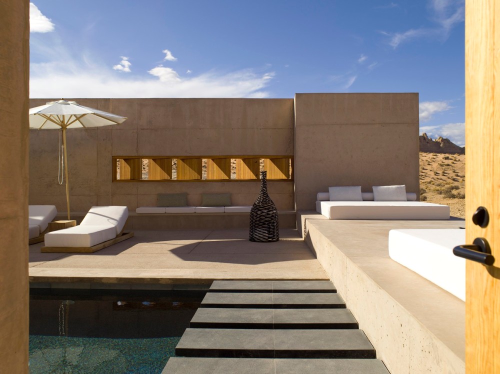安缦套房线条简洁,空间宽敞,采用天然材料进行装饰,与周围犹他州无垠荒漠的明亮色质完美契合。设计上采用白石地板、水泥墙壁、天然原木和深色金属设施。每间套房均配备一个带有壁炉的户外休闲室,举目可见大漠孤烟写意洒脱,部分套房还配有私人泳池或屋顶露台。