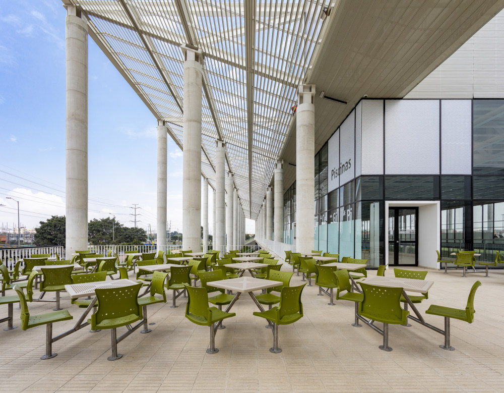设计师描述 | Designer description: The building is a large urban pavilion located in the metropolitan park El Tunal, which contains cultural, sports and recreational uses, and mainly serves the vulnerable population in the south of the city of Bogotá. Its outstanding horizontality allows for a building front on the western side of the park and serves as a doorway between the urban context and the wide, natural space of the park. For public use, its architecture is open, diaphanous, and clear, making transparency and permeability its greatest spatial qualities.