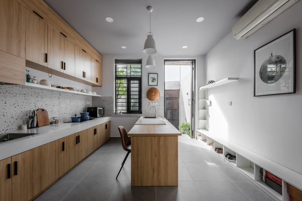 - More importantly, the homeowner always wants to see nature anytime, anywhere while living in the house. Therefore, to meet the above demand, Kts has arranged an alternating garden throughout the length of the house to create the effect of welcoming sunlight, wind and trees.