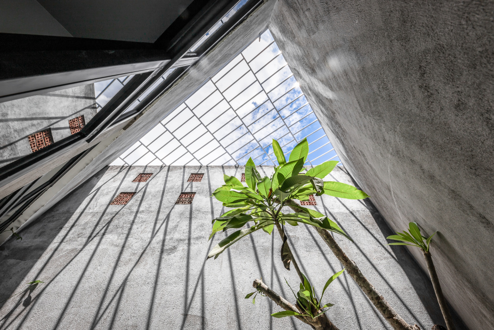 - ⁃ The outside courtyard creates a green area in the house, this space is also a place to receive and circulate air into the front and back yard.