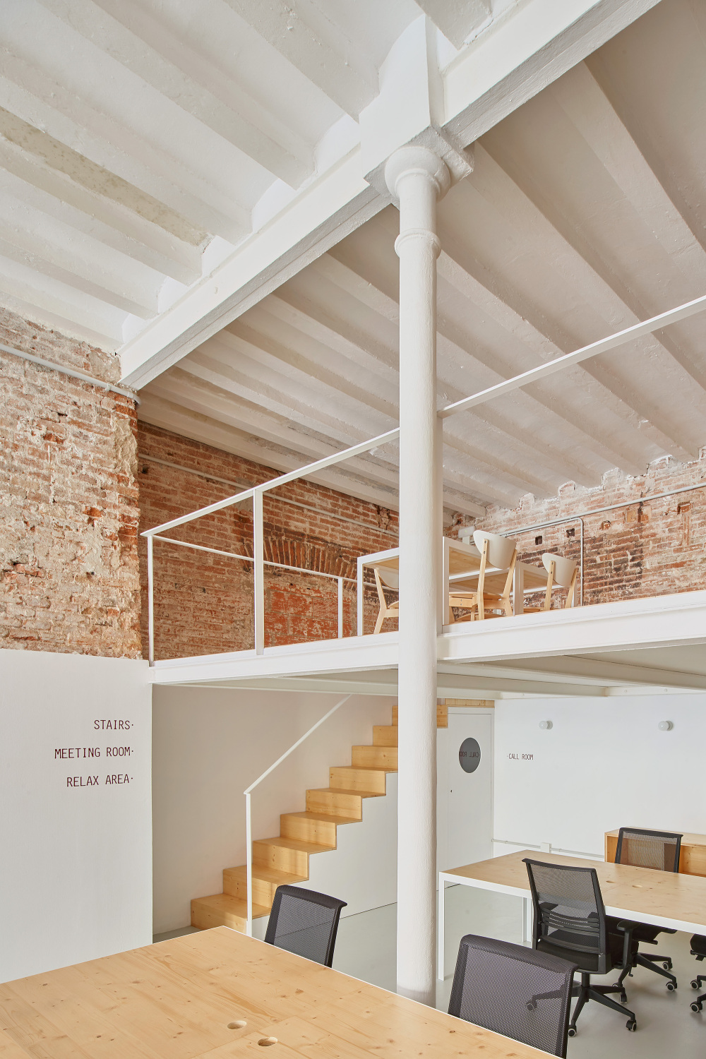 • 这处空间最初是一个建于1930年左右的古旧艺术商店,主要由砖头和钢柱打造。四面覆盖的石膏层使空间变得狭小,尤其在垂直方向上缩减了室内高度,也掩盖了建筑本身的特点。
