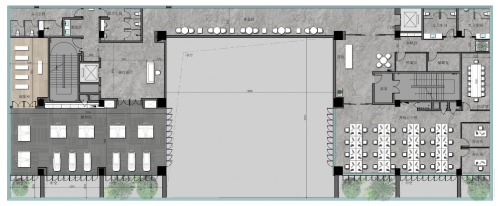 洽谈区与水吧区相接洽,动线的合理设置使得空间自由而开放,落地窗引导着区域迎向室外,自然的融入,颇有一番绿树成荫之感,真正做到大气而简约。