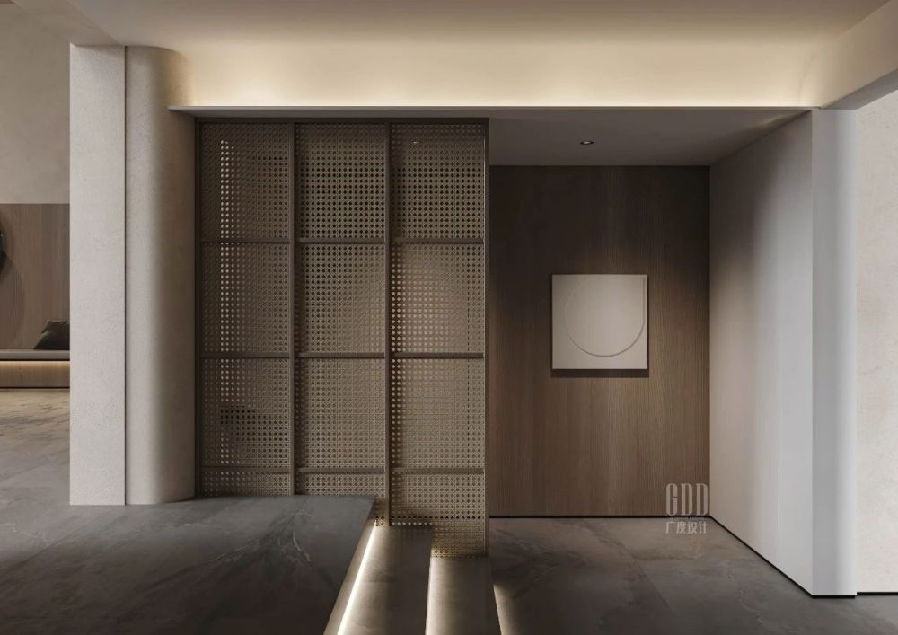 The round arch door weakens the sharp edges and corners, softens the visual experience of the space, and is elegant and advanced.