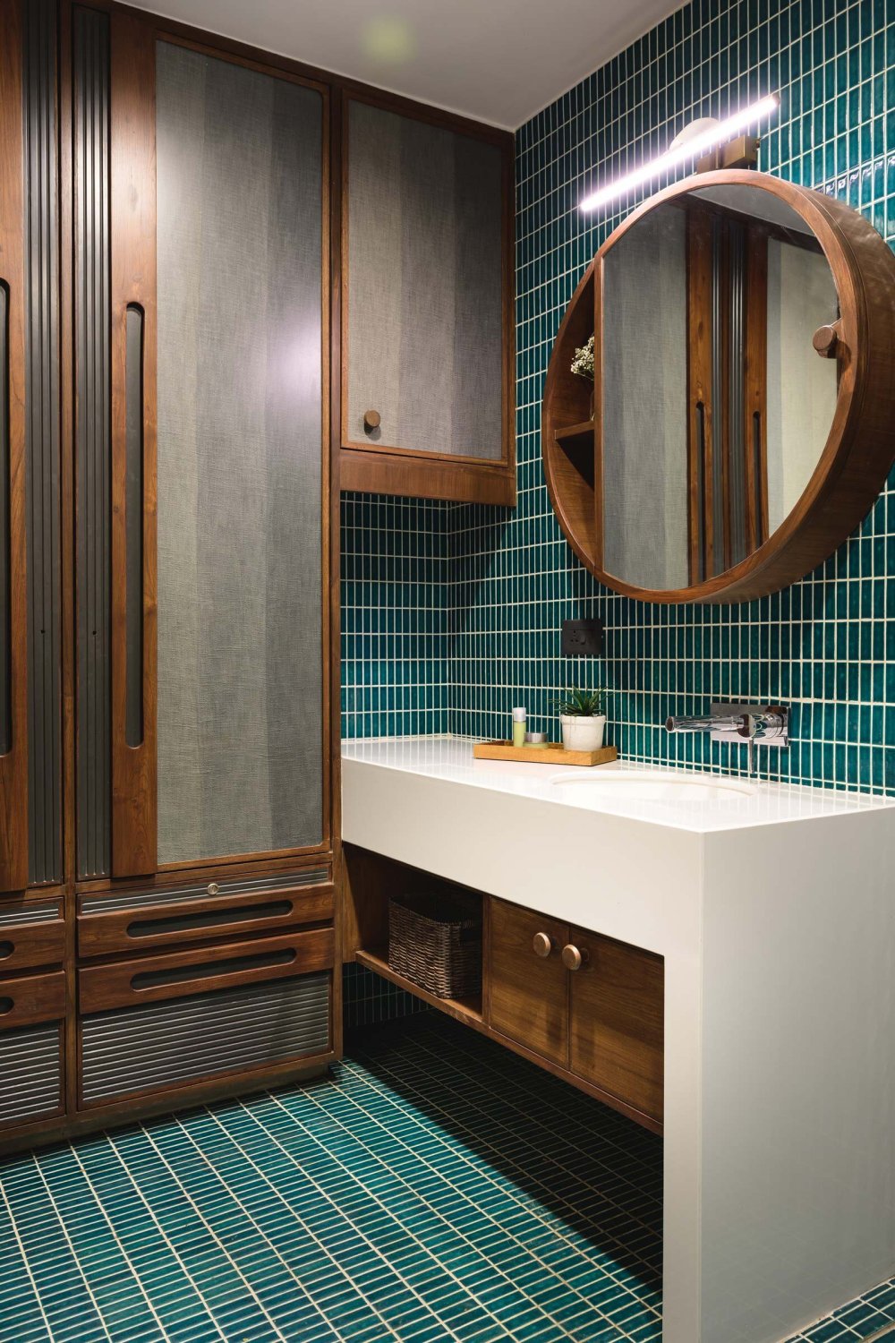 • 作为一个工作室,我们专注于突破简单材料的界限,同时坚持现代主义的设计美学。对于这个项目,我们决定使用再生柚木、黄铜和藤条的最小材料调色板。对于我们需要光线但仍保持视觉隐私的中间空间,我们使用了藤条填充百叶窗和凹槽玻璃隔板。