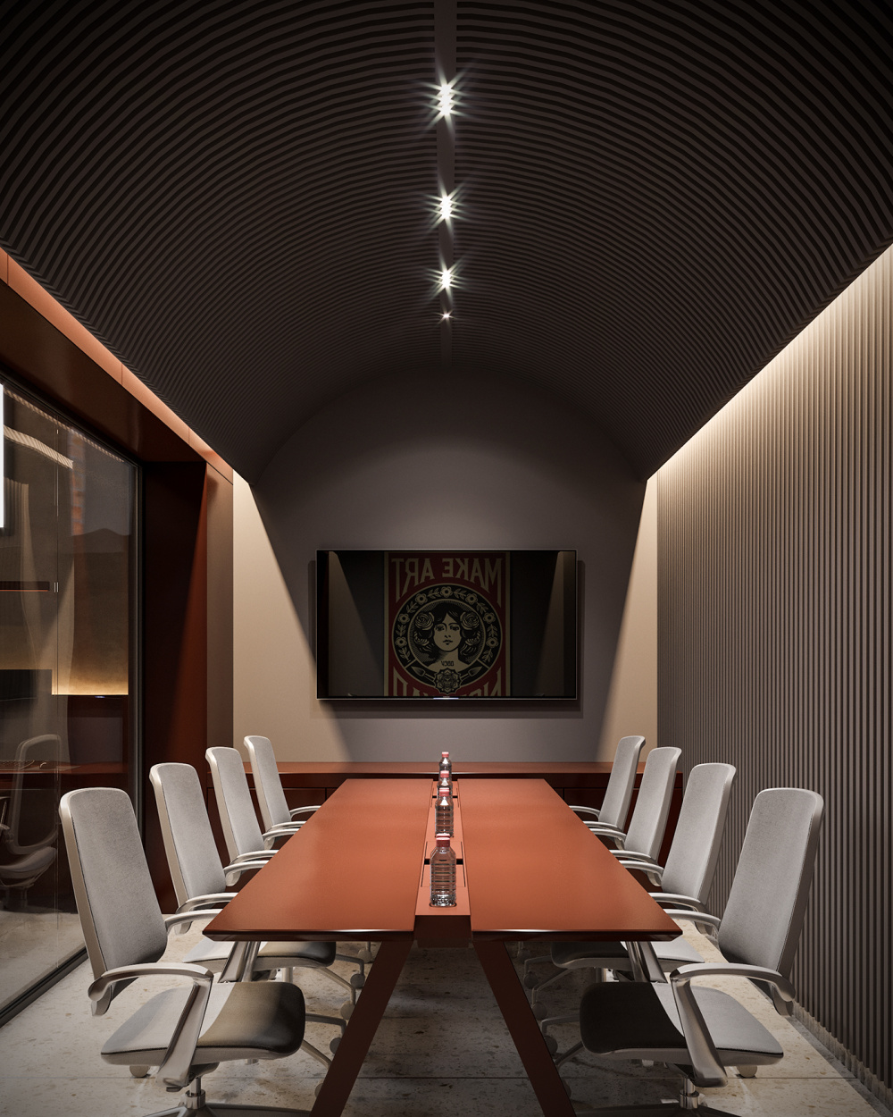 办公室室内设计。 纸天空象征着记录在纸上的信息的重要性,永恒且独立于环境、时间或技术。 纸可以保存最珍贵的数据,并能承载多年。在工作场所放松,只需向后仰望天花板,立即将您带入创意形式的世界,在那里您可以发现一些东西 每一眼都是新的。