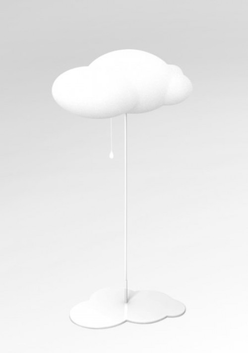 落地灯有小小的、雨滴形的拉线小开关,云朵形状的底座,则是灯罩的投影。