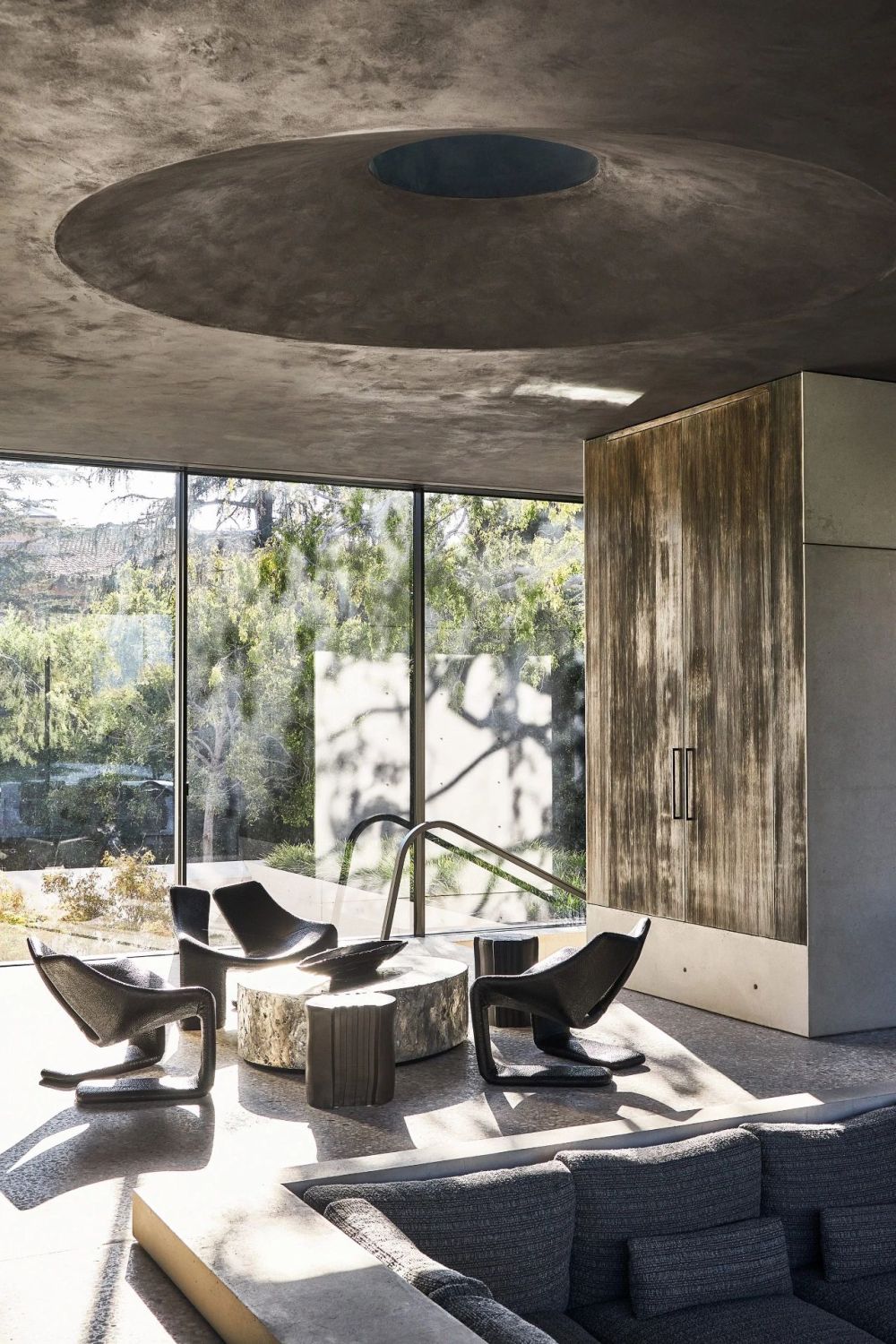 位于洛杉矶的现代式住宅,由设计师Kelly Wearstler和Masaststudio共同设计,将建筑、室内和景观融为一体,强大的凝聚力和协调感营造出雅致而温暖的氛围。客户希望建筑具有雕塑感和艺术性,但同时又不失居家的舒适性,于是,设计师试图模糊室内外的界限,创造了一个无限流动空间形态。