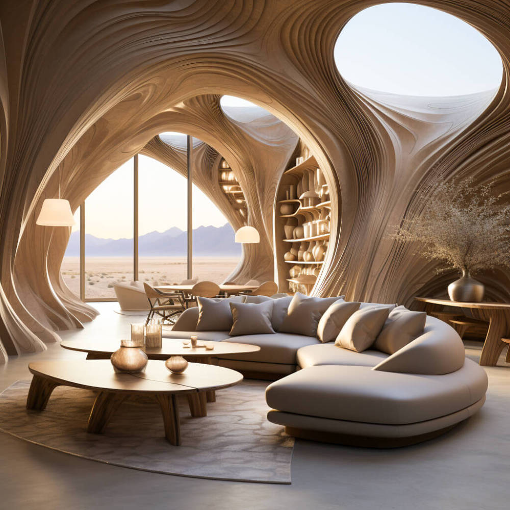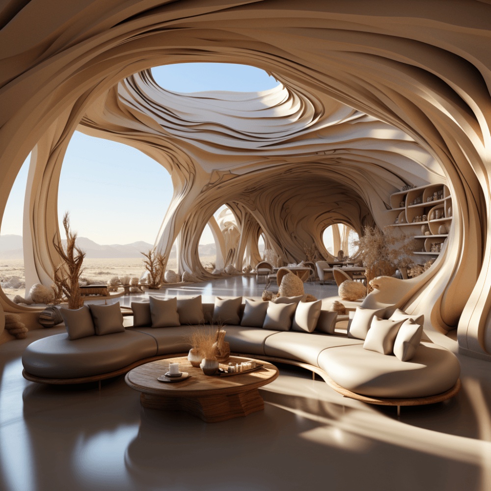 • 沙漠中心的一座三层弧形木建筑展现出逼真的雕塑和流动的纹理,灵感来自富有远见的艾里斯·范·赫本 (Iris van Herpen)。 在这个高分辨率的庇护所中,质朴的魅力与环保的工艺相结合,装饰有图案的表面,庆祝自然与设计的结合。 步入建筑成为艺术的领域,每个细节都讲述着创造力和联系的故事。