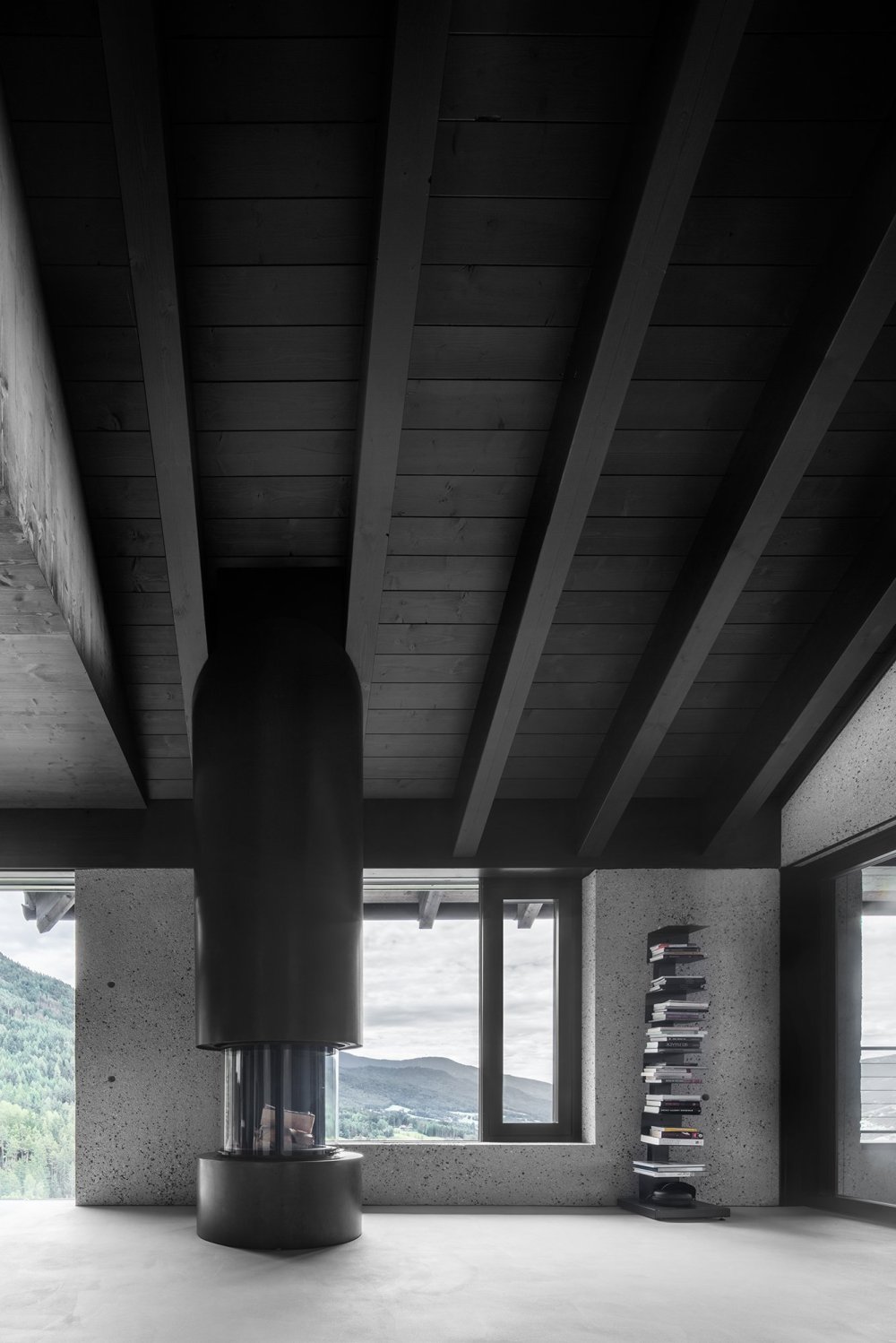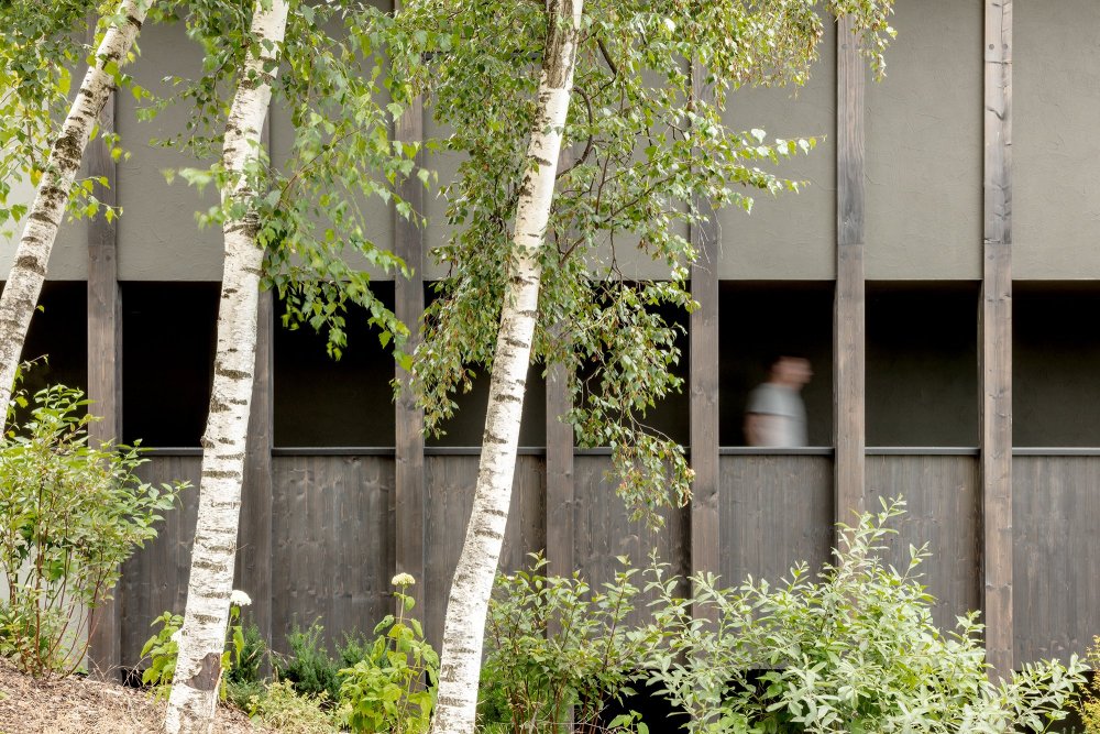 这座多户住宅位于山坡上,将传统建筑元素与现代设计解决方案相结合。外观以黑色木材覆层和亮屋顶为特色,而水洗混凝土则增添了质感和对比度。在内部,一个引人注目的黑色钢楼梯是极简主义室内的一个大胆焦点。该设计优先考虑室内外空间的和谐融合,确保舒适性和功能性,同时与自然环境融为一体。