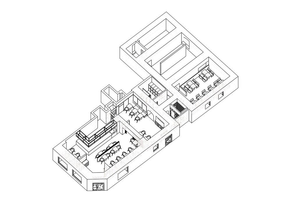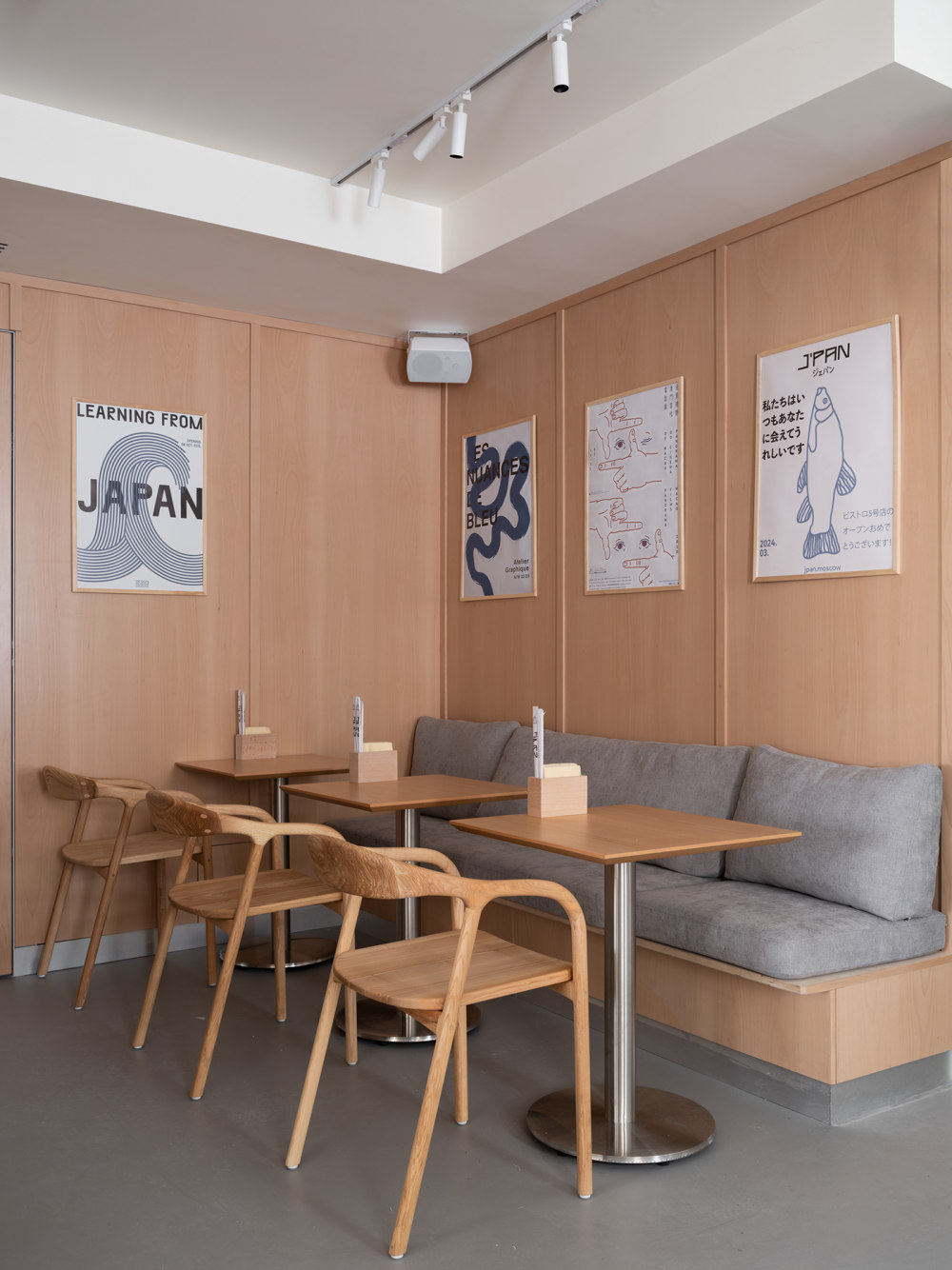 JPAN是家族中的第五家餐厅。该建筑位于一座革命前的建筑内,有拱形天花板和复杂的布局。从功能上讲,该空间分为三个房间——一个带酒吧和各种休息区的主房间,中间是一个舒适的小房间,还有一个带高拱形天花板的稍微隐蔽的房间。主要的室内材料是木材、混凝土、金属和玻璃,它们遍布整个空间,相辅相成。尽管所有的房间都是有凝聚力的,但它们在视觉上是不同的,每个房间都能提供有趣的景色。第一个房间是极简主义的白色,第二个房间是木制的,第三个房间以织物为主。在内部,我们向日本传统的“sedzi”隔断致敬,这些隔断是由“wasi”(日本传统纸张)制成的。在第一个房间里,这些隔断创造了不同的区域,为空间增添了隐私和舒适感,而不会在视觉上造成混乱。在远处的房间里,它们是悬挂的画布,与拱形天花板的线条相呼应。另一种分区技术是使用玻璃砖,一面是透明和光线的,根据观察角度的不同而不同。在某种程度上,这是对日本建筑师Hiroshi Nakamura及其光学玻璃屋项目的致敬。