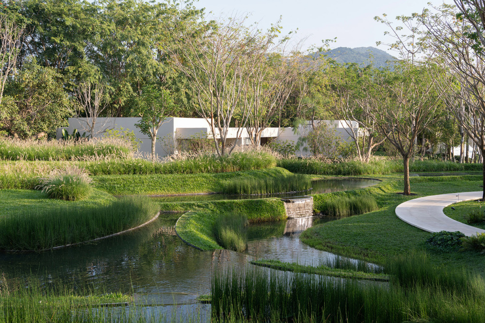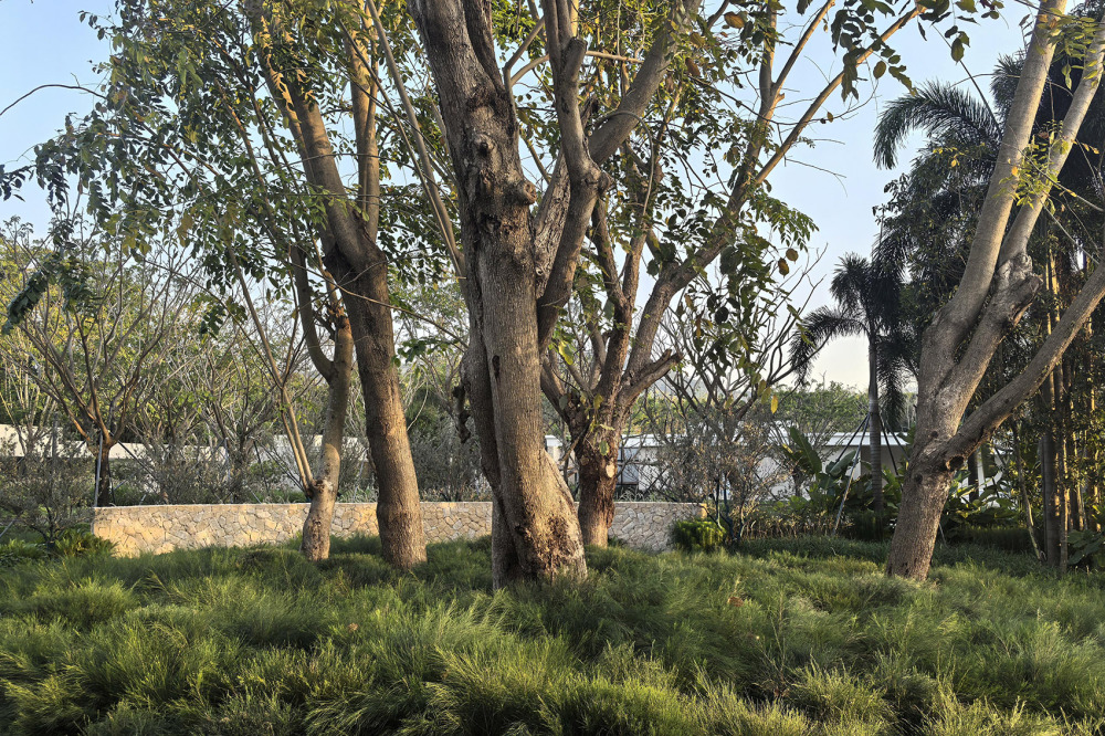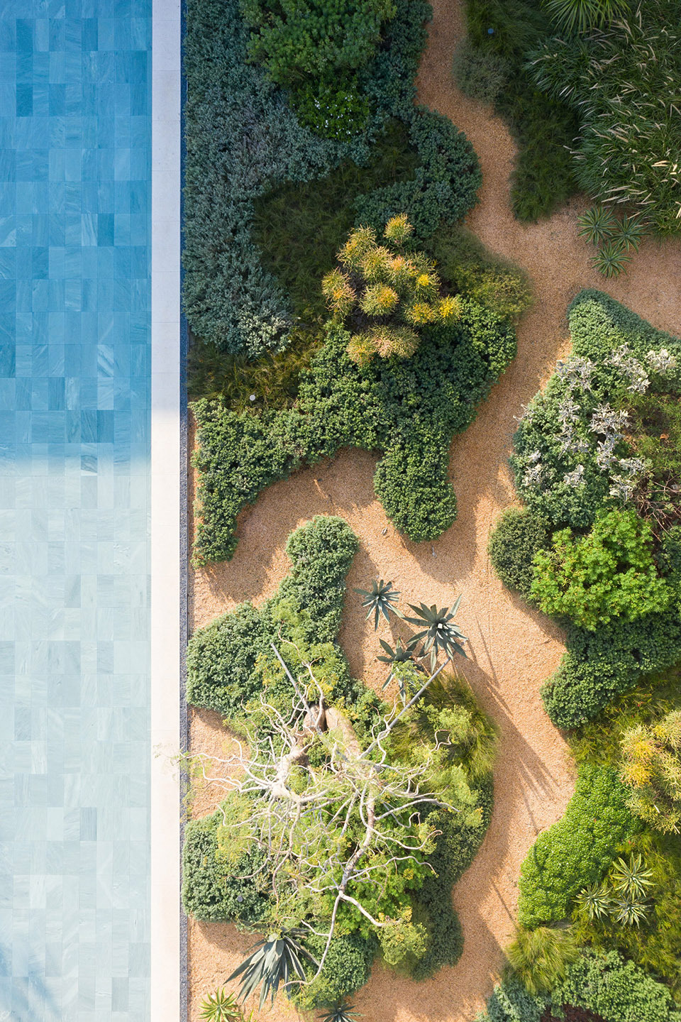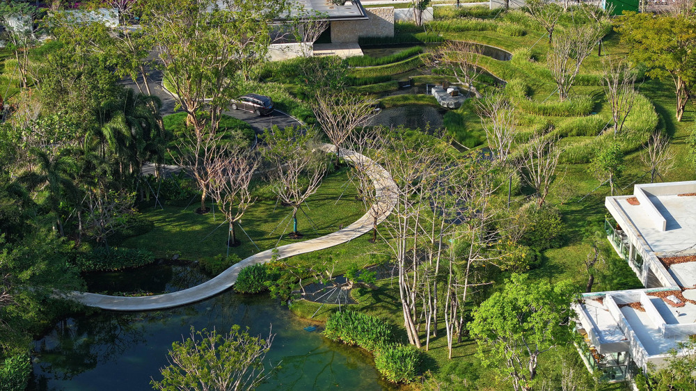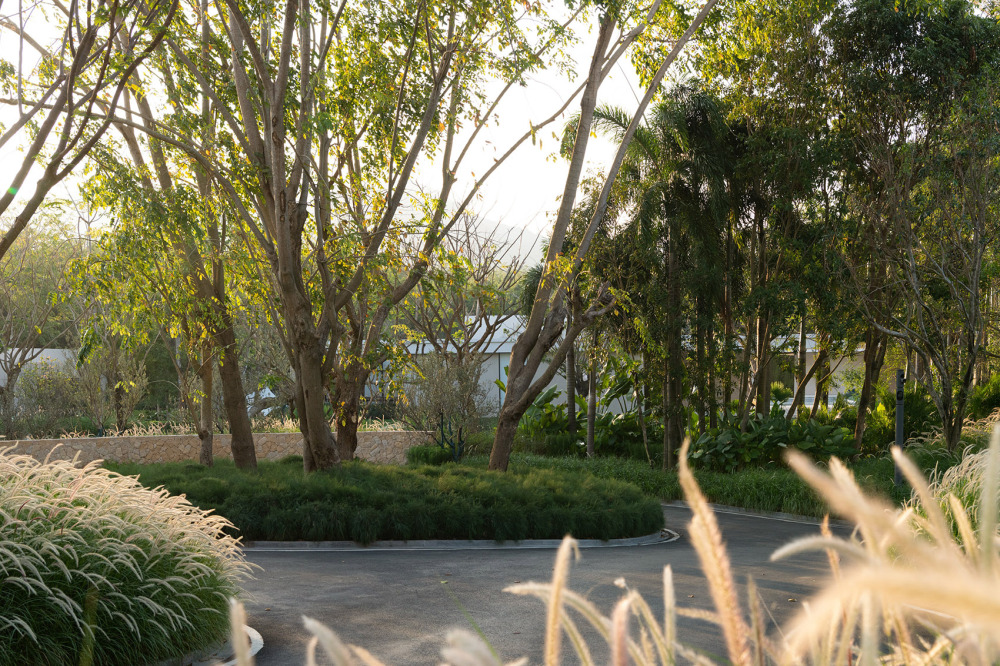 巴西设计师布雷·马克斯(Roberto Burle Marx)的画作有强烈的现代主义风格,他擅长运用抽象的形式、流畅的线条和热带丰富的色彩来表达现代艺术,也影响了现代景观设计的发展。在位于建筑矩形中庭的沙生艺术花园,致舍受画作的启发,以砾石为底,沙生植物作画,发挥每种植物独特的色彩和笔触,包含色调的冷暖,植株的高低,叶片的大小长短,质感硬挺与蓬松的对比等;同时,阳光、雨露、风等自然元素也为这一生长的画作增添了灵动的韵味。而花园本身又是人们可亲近和参与的,迈入其中就是一方有趣的小天地。