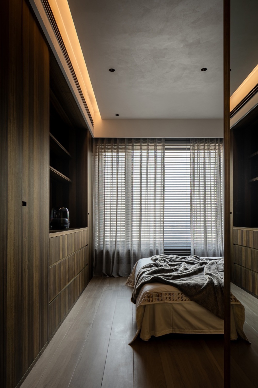 考虑青少年的成长,次卧的木皮色选用相对青春的浅色木皮。最终在屋主和设计师一年多的努力后,完成后的新家气质是低调又贵气,丰富又克制。