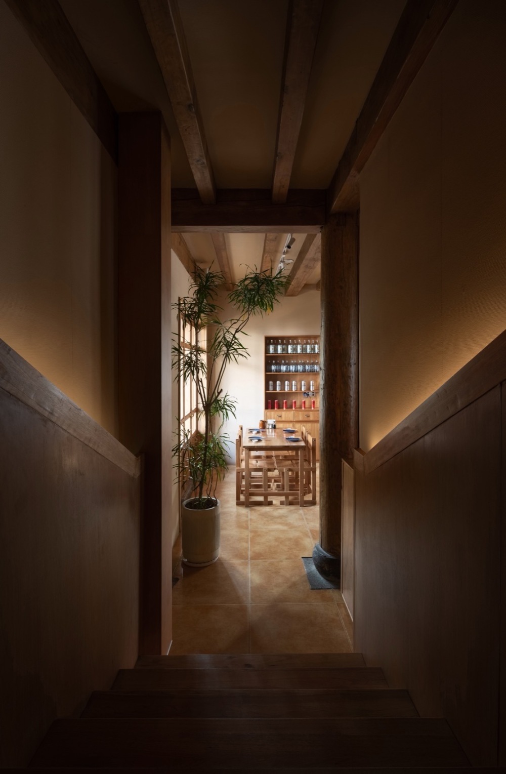 在料理哲学与空间美学的双重维度,整个空间宁静而优雅,透着日式侘寂美学的克制和留白,在黄昏时分与室内暖光交融,形成具有时间厚度的”第三种光线”。