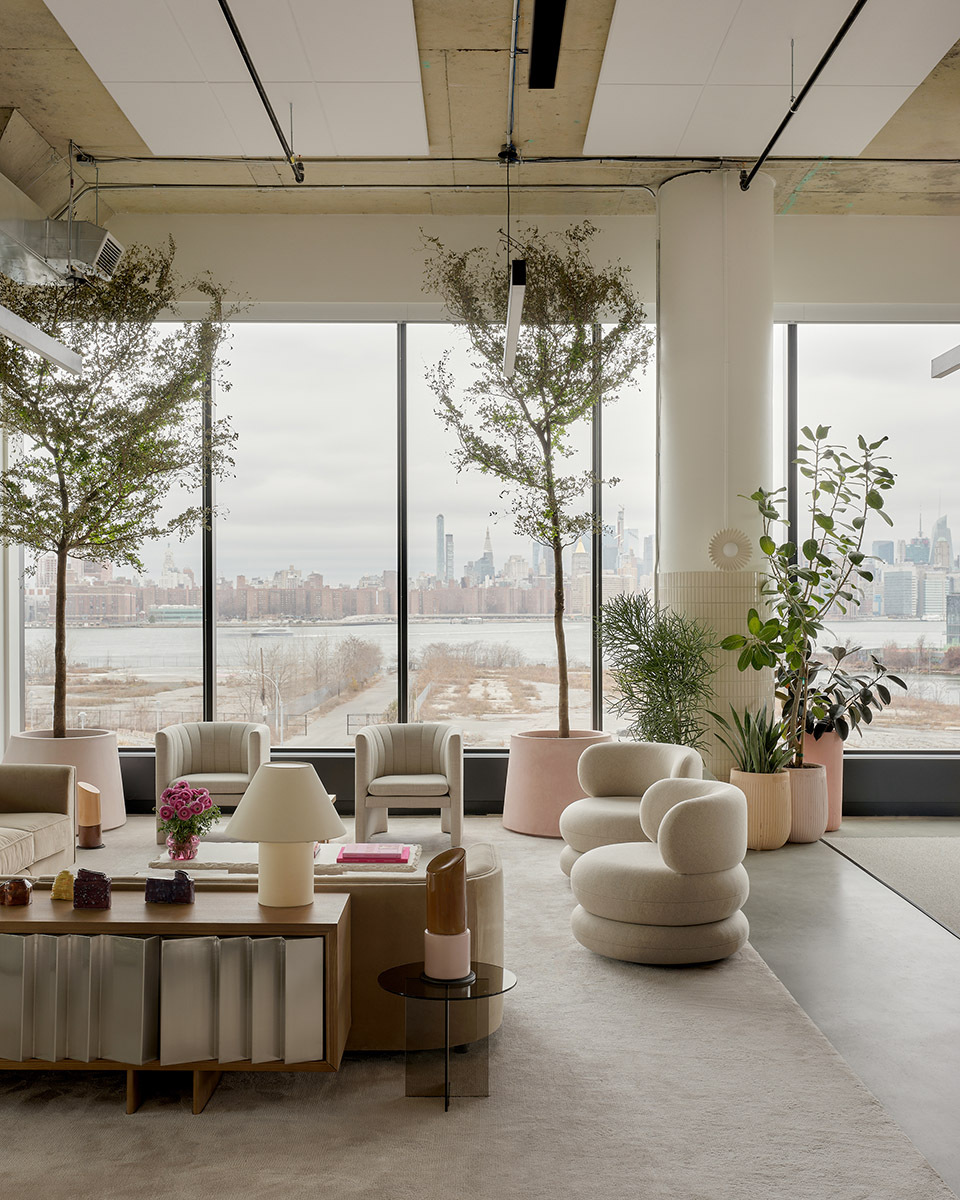 高管办公室则被设计为共享的小型讨论空间,配备柔软座椅和不同尺寸的交流区域,实现空间的“去中心化”,同时也保留必要的私密性。靠窗的休闲区视野开阔,可远眺东河与曼哈顿天际线,成为员工日常社交的理想场所,也有助于吸引与留住优秀人才。