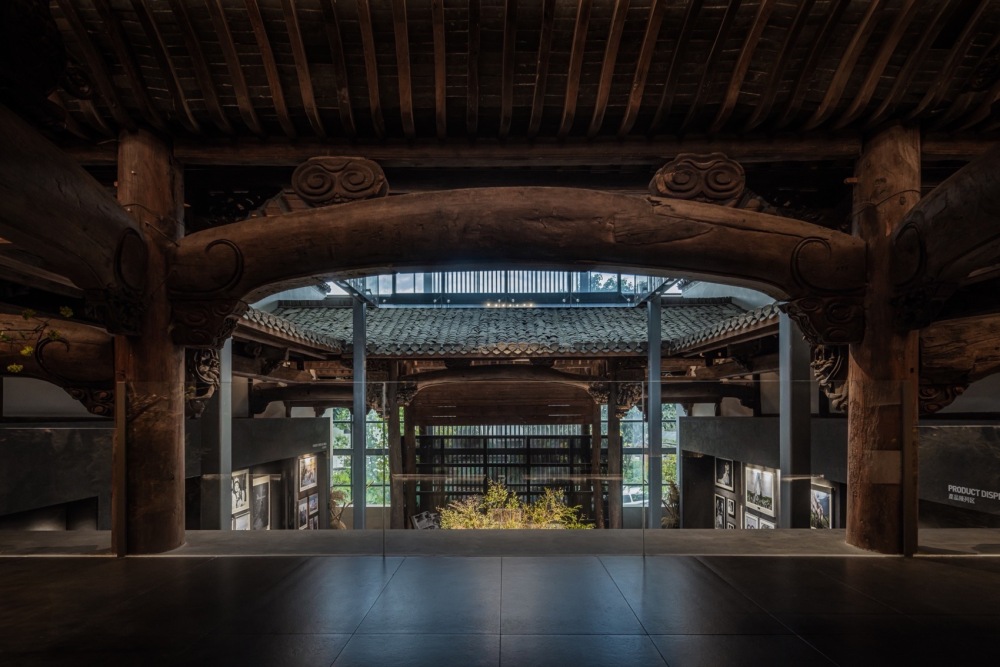 整栋建筑架构在初唐宰相戴至德府邸原型之上,外部建以玻璃幕墙保护设计,内部利用结构稳固的砖石对木质构件加固。内部空间分为古建筑文化区和商业摄影功能区各占一半,让历史底蕴与现代世界在此对话。