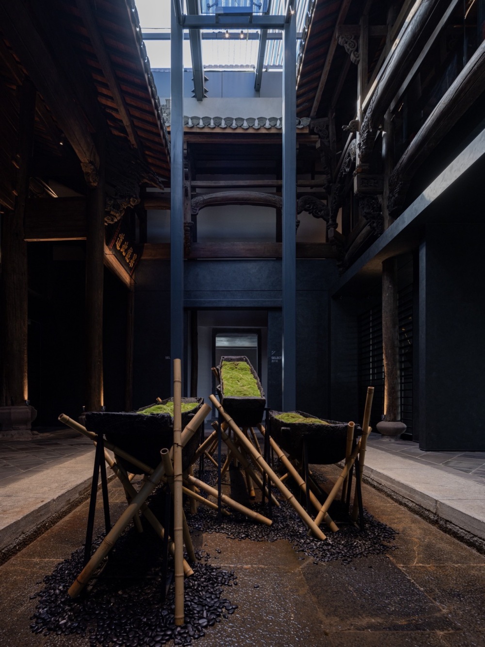 肃穆感的砖墙和保留原始状态的木质结构,穿过时间的繁华起落,跨越千年沧桑气度,古建的生命有了更深刻与极致的诠释。现代与传统在此碰撞、互融,生出一场逾越千年,跨时代的对话。