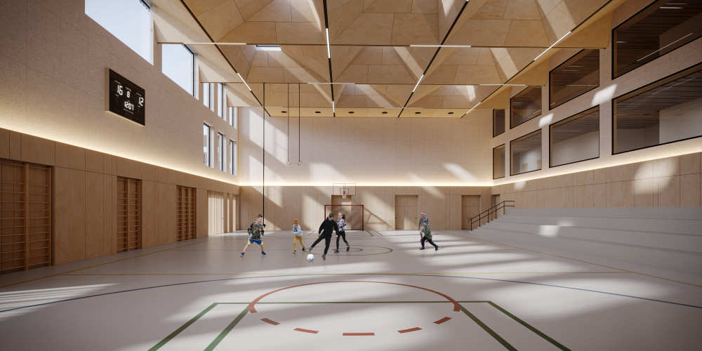 在设计现代学校时,martins团队遵循了当代趋势,专注于创造促进有效学习的空间,确保学生的安全和舒适,并考虑环境因素。我们使用的主要原则包括:灵活和适应性空间:利用可以轻松改变用途的多功能房间。移动家具允许快速调整空间以满足各种需求:小组工作、个人学习或活动。自然采光和通风:大窗户和采光井,最大限度地利用自然光。自然通风系统,确保健康的室内环境。可持续性和生态友好性:使用环保和可持续的材料。安全性和包容性:设计考虑到所有学生的需求,包括残疾儿童。通过方便的出口位置、视频监控和门禁系统确保安全。安全性和包容性:设计考虑到所有学生的需求,包括残疾儿童。通过方便的出口位置、视频监控和门禁系统确保安全。安全性和包容性:设计考虑到所有学生的需求,包括残疾儿童。通过方便的出口位置、视频监控和门禁系统确保安全。技术整合:利用交互式白板、平板电脑和计算机实验室等现代技术。构建优化资源利用和提高舒适度的管理系统。