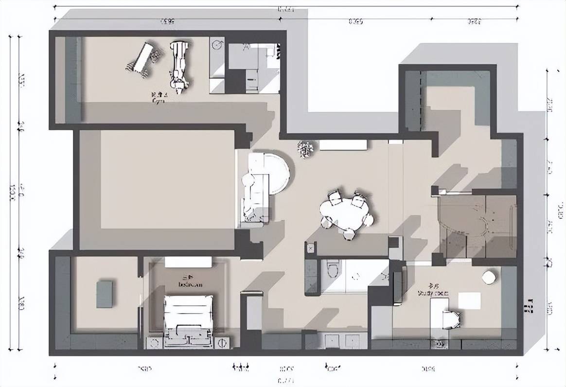 ④考虑书籍摆放的需求以及家里电视并不常看的情况,选择了移动式电视;整个家居配色以奶白色加深灰色再选择木色贯穿其中,全屋造型木地板通铺;