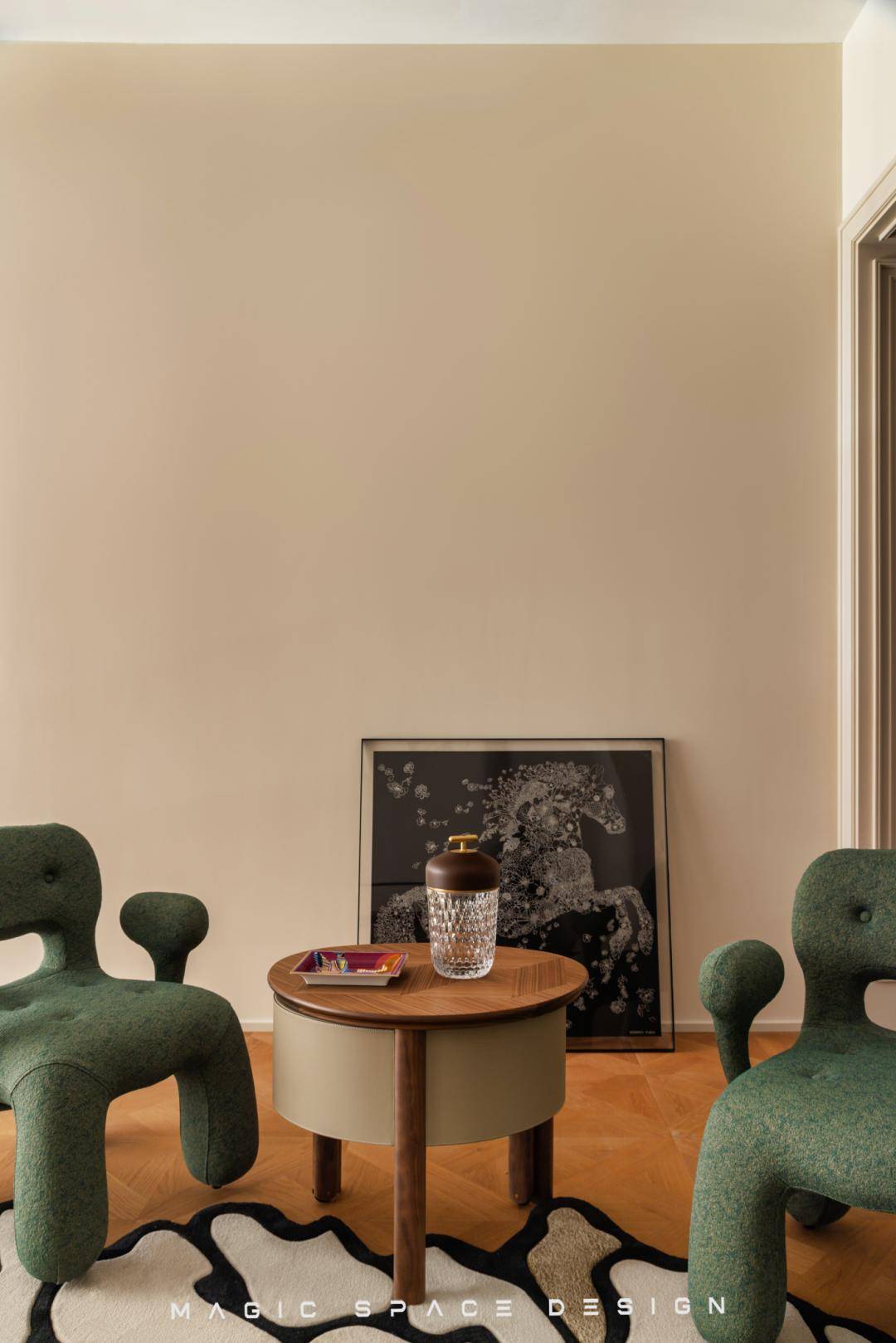 以宏观纵览客厅,会发现古典与现代两个时空的美学符号。形与意平衡在复古的框架间,用两种审美的精华装点最重要的空间。元素、标志、意象在混搭,生活的趣味和张力也在碰撞出火花。